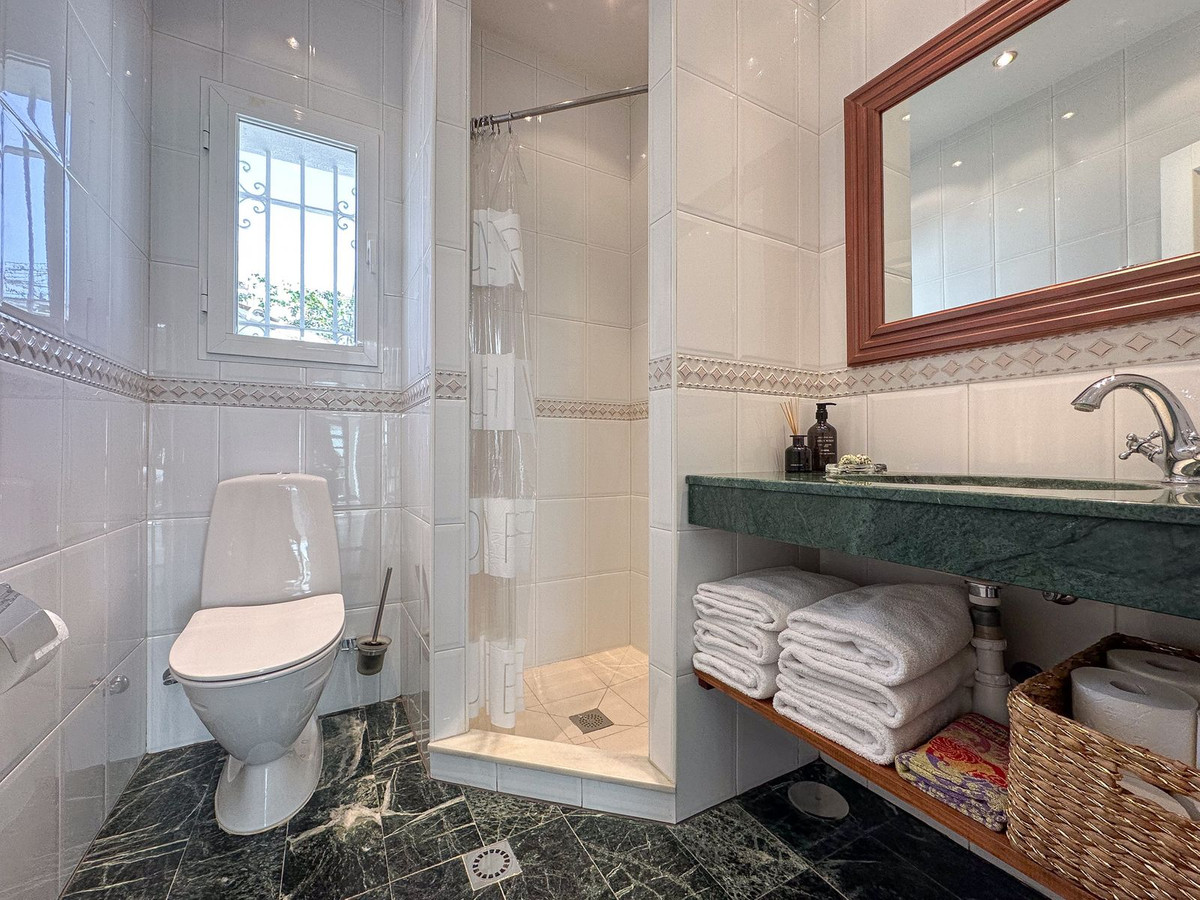 Huset ligger i det attraktive og rolige område La Capellania, som tilbyder både privatliv og nem adgang til en bred vifte af faciliteter. Inden for en kort køretur på cirka 10 minutter finder du lokale restauranter, supermarkeder, stranden og sportsfaciliteter som padeltennis, tennis, fitnesscentre og spa. Her kan du nyde det bedste af både ro og komfort, mens du stadig er tæt på alt, der gør livet nemt og behageligt.
