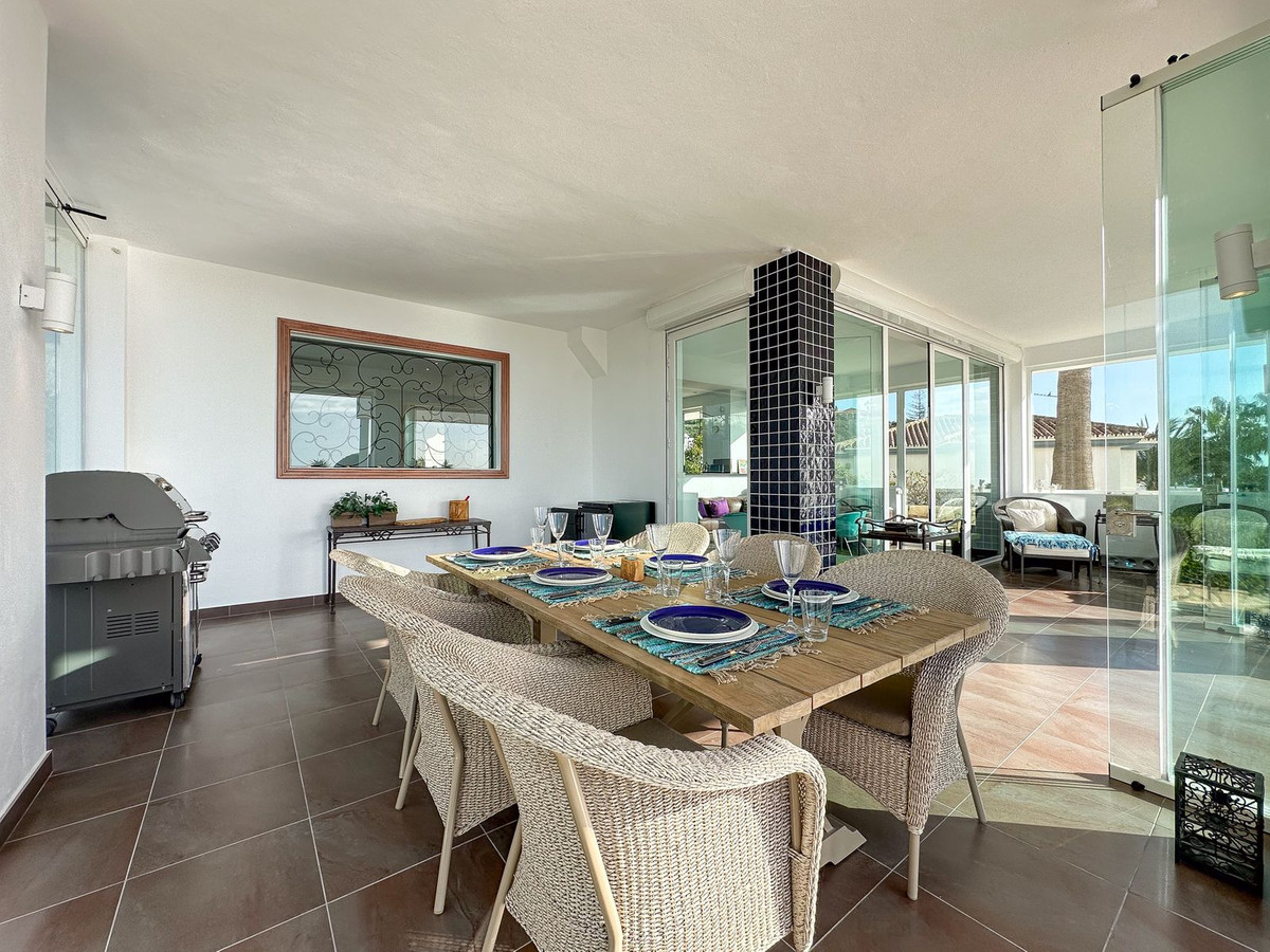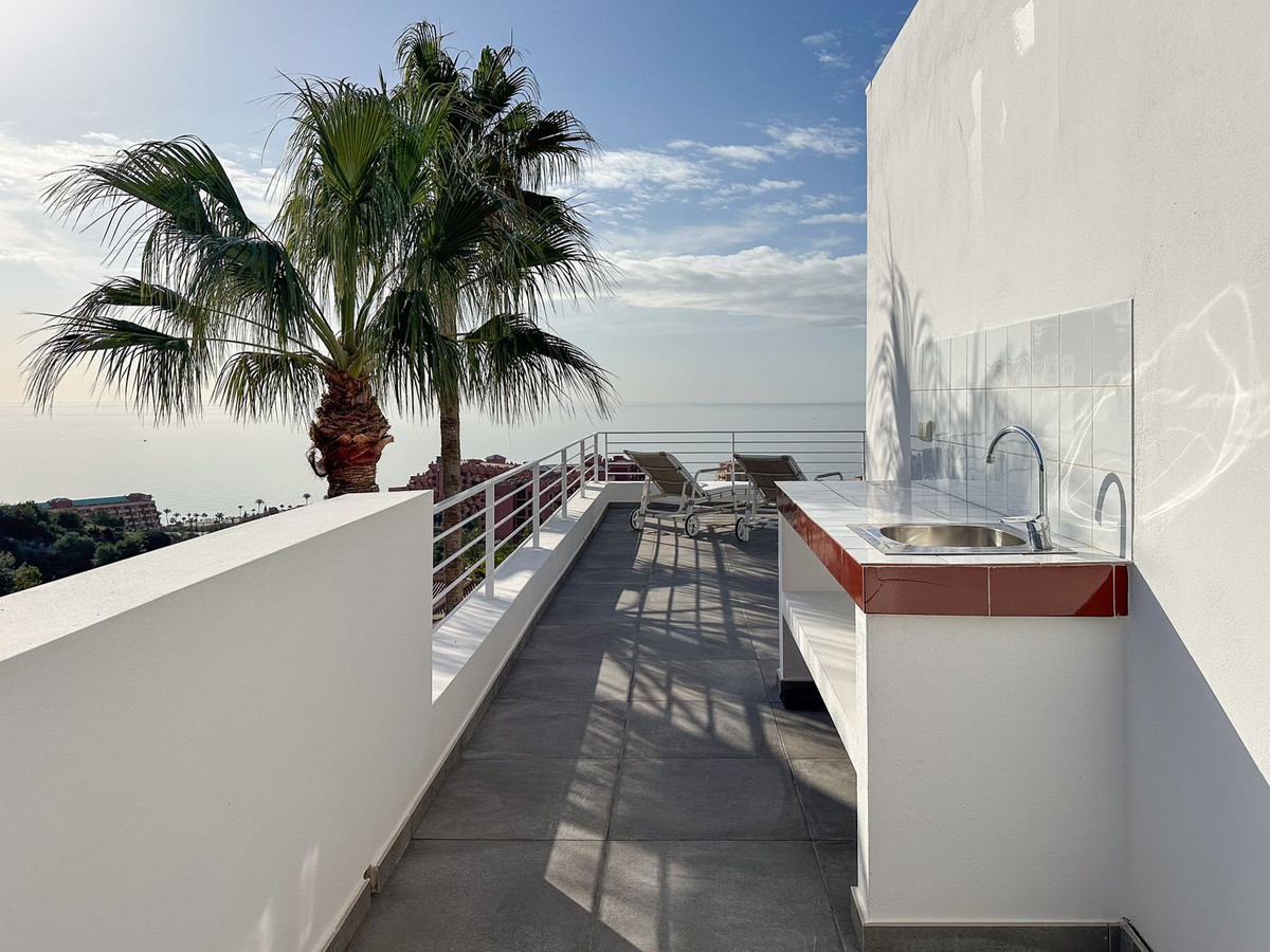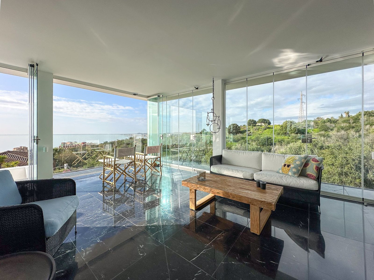 Denne etage har også direkte adgang til en overdækket terrasse med glasgardiner, hvor du kan nyde både privatliv og den fantastiske udsigt over havet og Fuengirola.