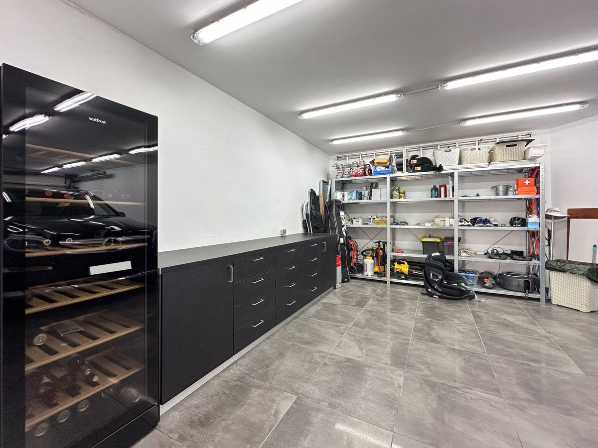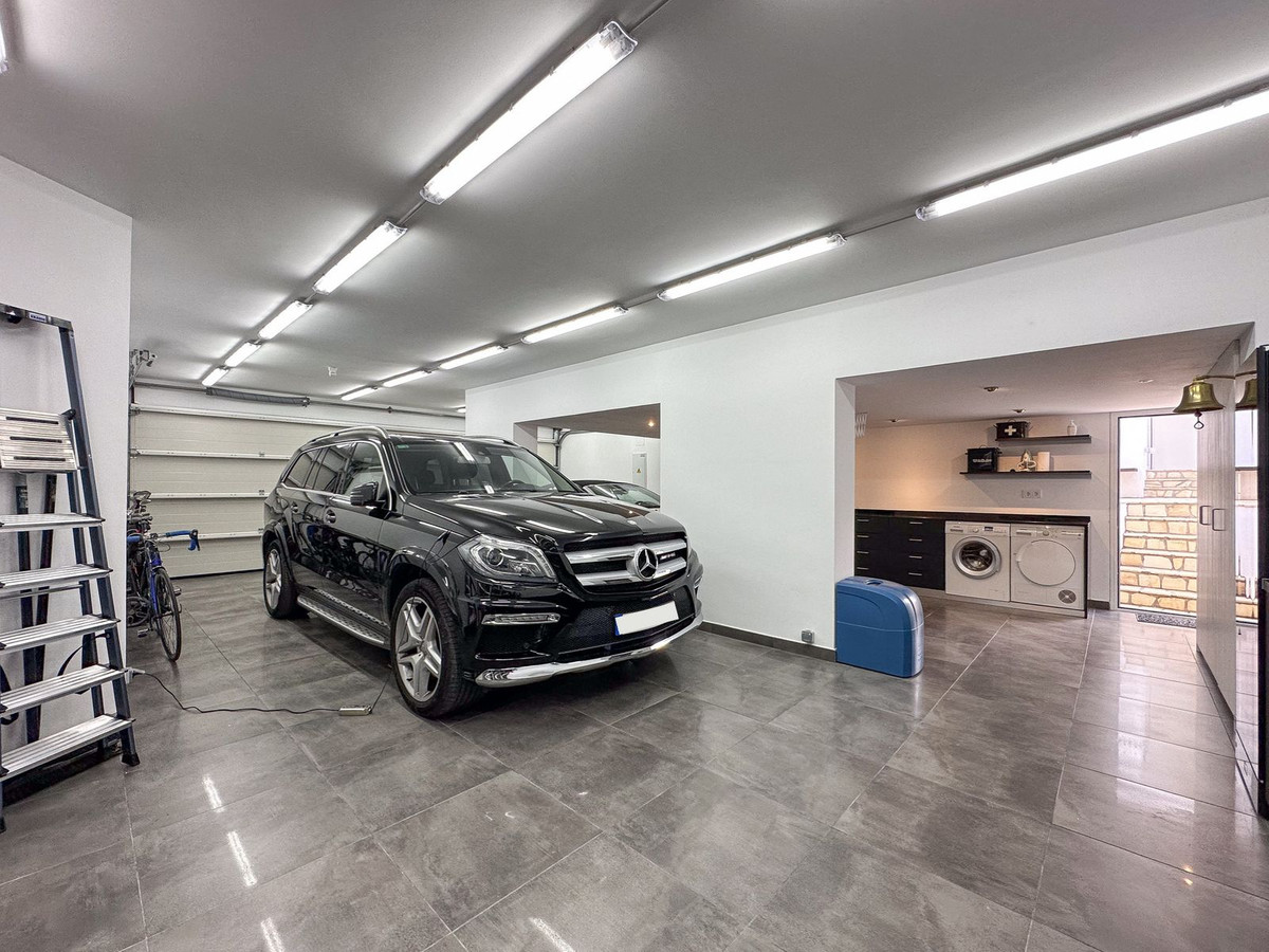 Garagen er rummelig og har plads til op til fire køretøjer. Den fungerer også som et bryggers, hvor du finder både vaskemaskine og tørretumbler. Garagen er virkelig noget særligt! Lys og rummelig, og den forbliver tør, selv under kraftig regn.