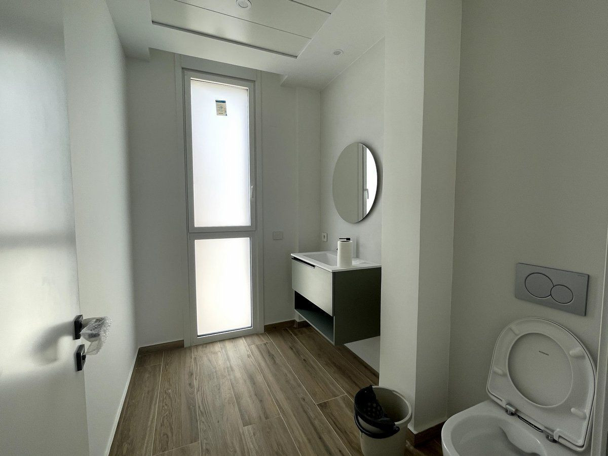 The exterior of the villa is a true oasis. It boasts a large swimming pool surrounded by terrace areas, perfect for relaxing or enjoying the Mediterranean climate with friends and family. The beautifully designed garden complements the modern aesthetics of the home, while parking space for up to 5 vehicles ensures convenience and practicality.