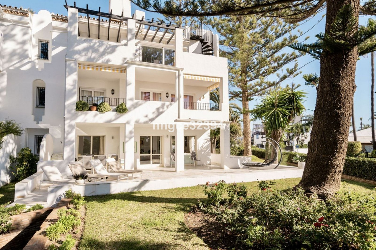 Træd ind i strandens lyksaligheder med denne smukke private hjørnelejlighed med 3 soveværelser og 2 badeværelser. Kun 30 meter (1 minut) fra strandpromenaden i San Pedro de Alcántara tilbyder denne rummelige havelejlighed i stueetagen en sjælden mulighed for at bo få skridt fra stranden, mens du nyder roen i frodige, modne haver, palmer og fyrretræer.