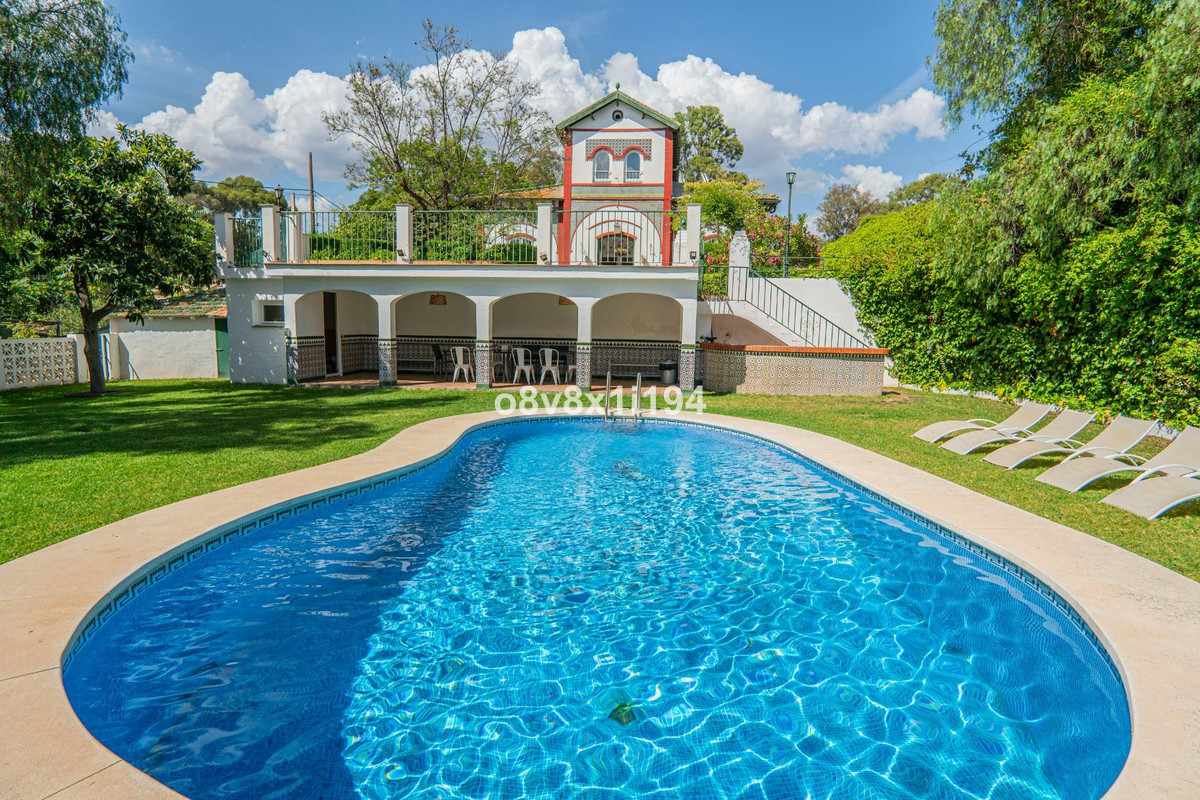 It consists of a spacious and charming entrance hall, a beautiful and cosy living room with a fireplace, a large glazed terrace, which leads to another charming Andalusian-style dining room, a beautiful living room, five bedrooms with built-in wardrobes, three bathrooms, two of them with a shower and the other with a bathtub, a kitchen and a beautiful patio.