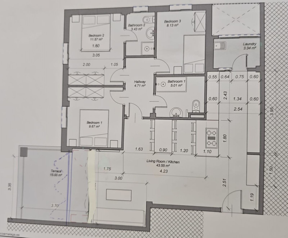 Fantastic opportunity to buy a completely newly renovated apartment in high Scandinavian standard around the corner from the Swedish School in Fuengirola. It is spacious 110 m2 and has 3 bedrooms and 2 bathrooms. The location of the terrace is south-west with sun all day and unobstructed views from the 6th floor. The location at Rosario Park is very quiet with no through traffic. Everything in the apartment is brand new and of high quality; windows, kitchen, machinery, floors, electrical wiring, plumbing, AC, doors and tiles. Very good rental potential.