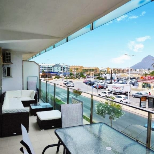 The apartment features three bedrooms, a modern bathroom, and a spacious living area that opens onto a private balcony, ideal for relaxing in the sun. Equipped with air conditioning for year-round comfort, this home offers the perfect blend of convenience and coastal living.