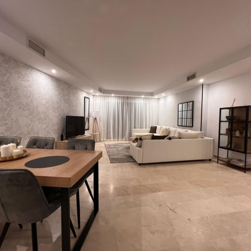 Stunningly refurbished 3-bedroom, 2-bathroom apartment offering breathtaking panoramic views of the Mediterranean Sea, the beautifully landscaped community grounds, and Marbella itself.