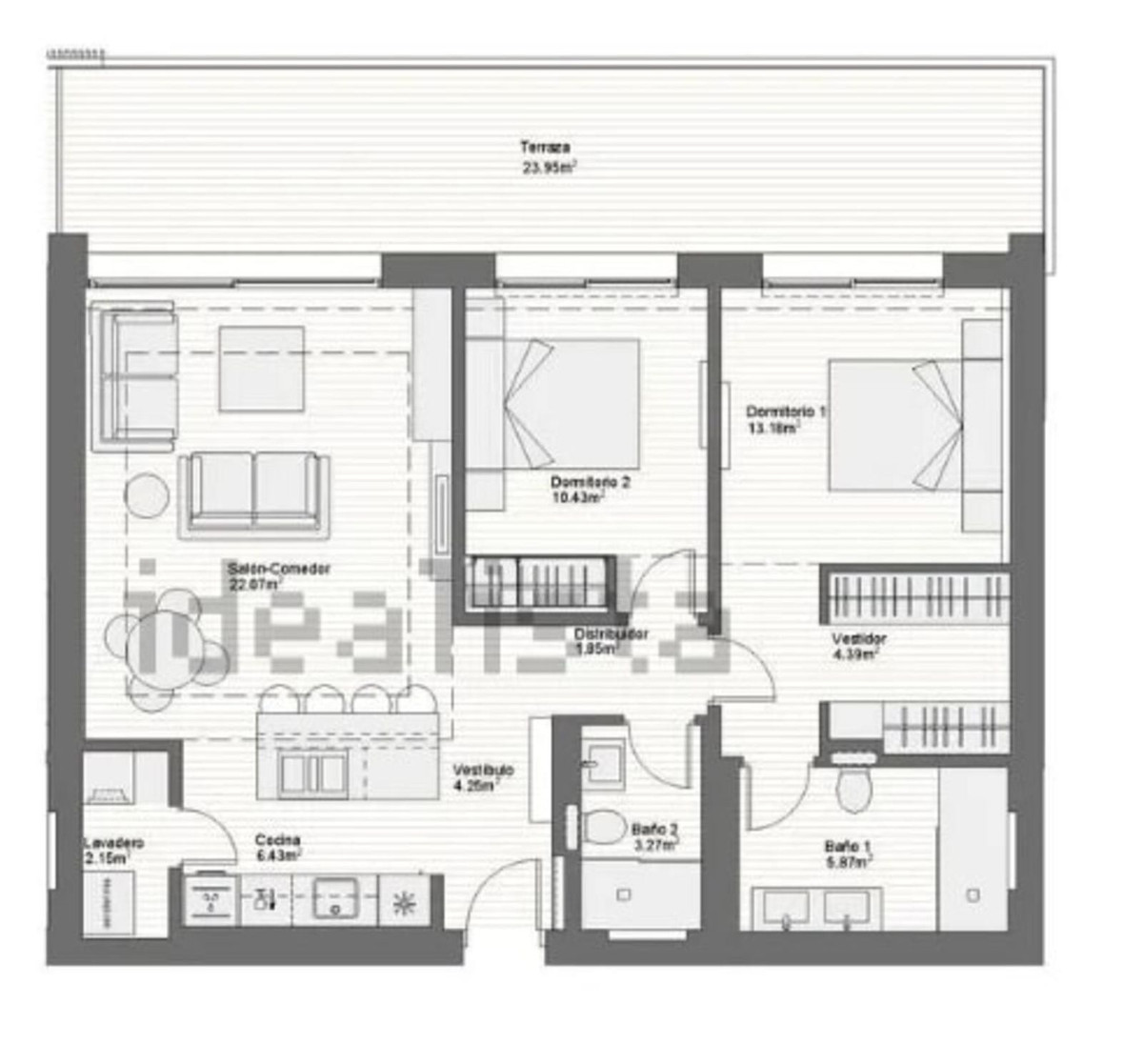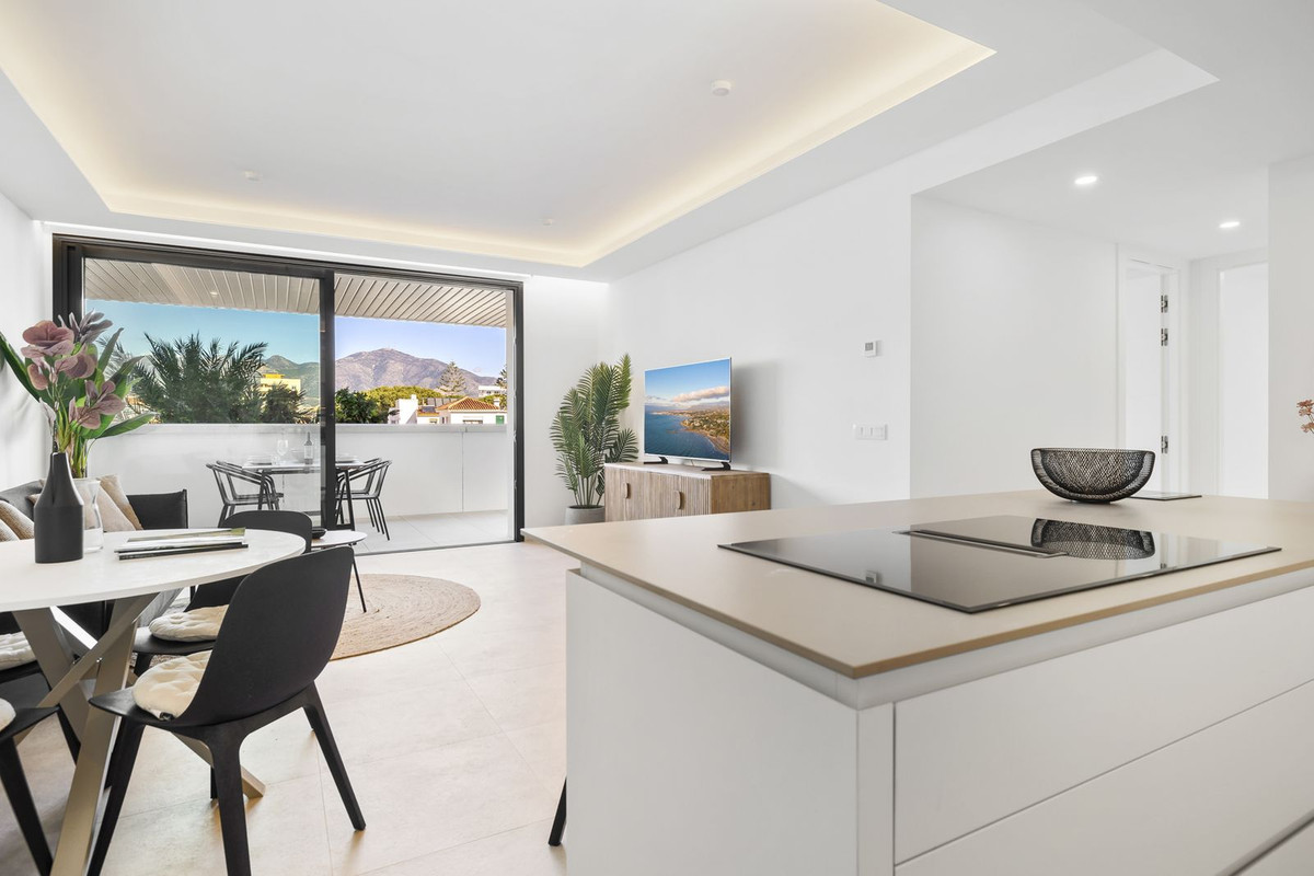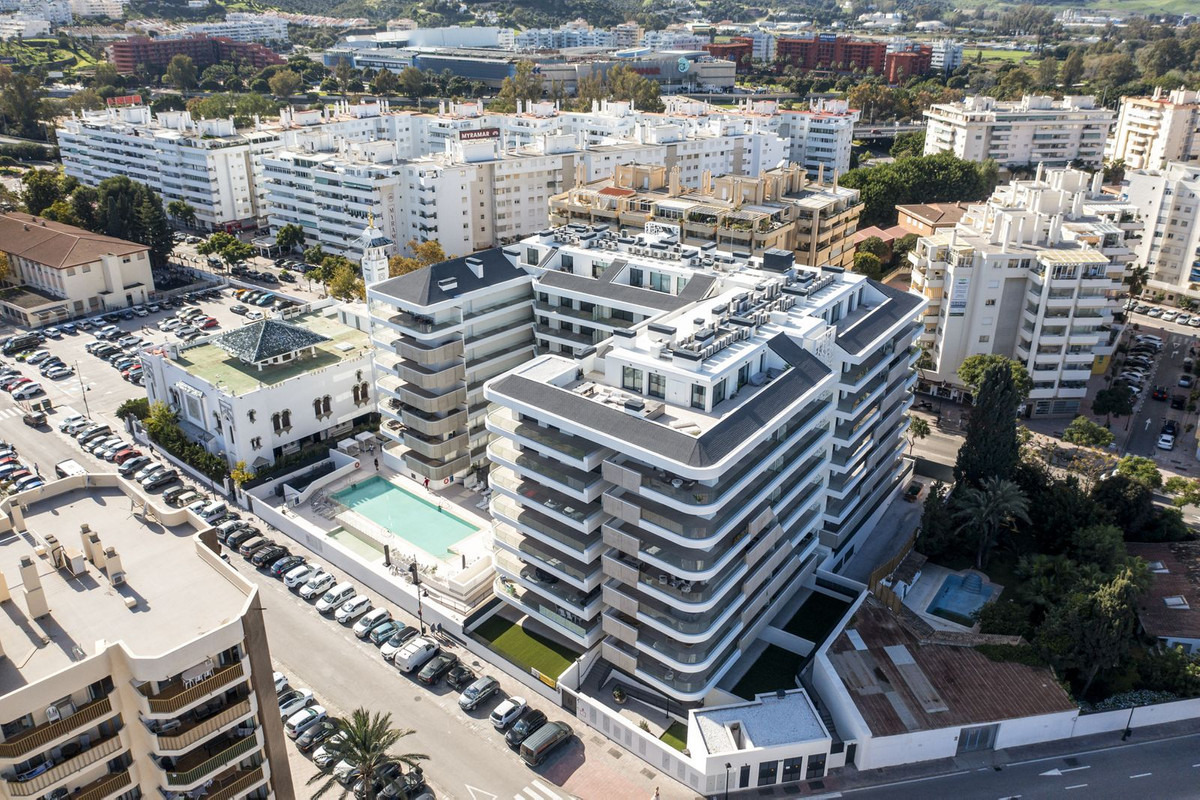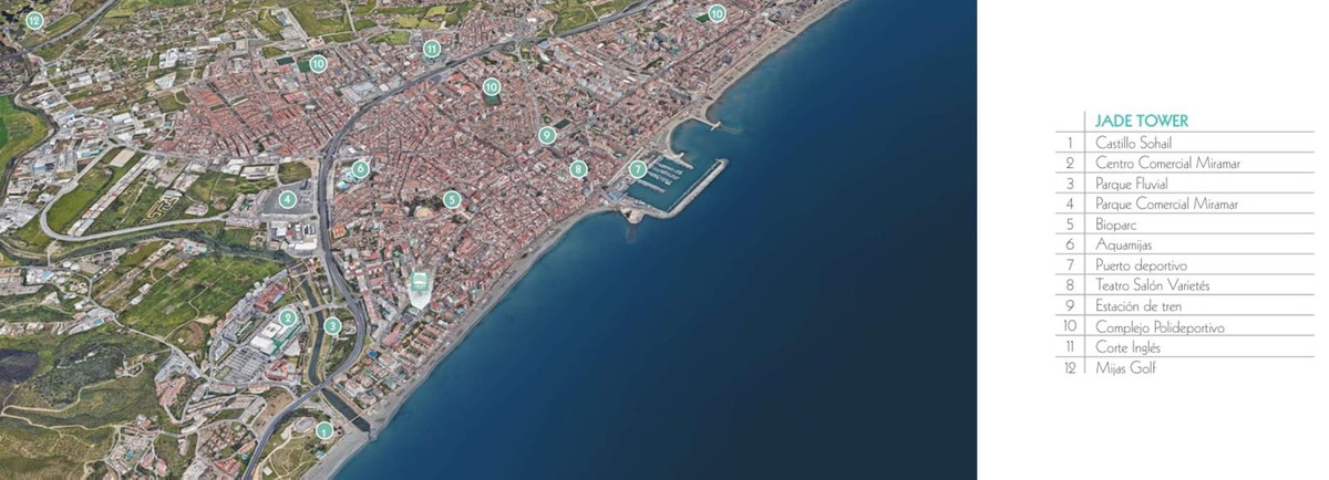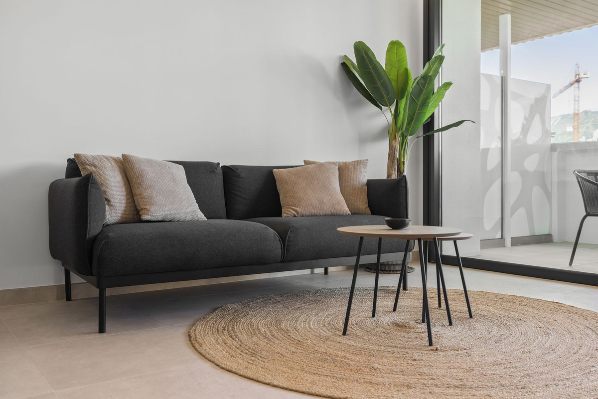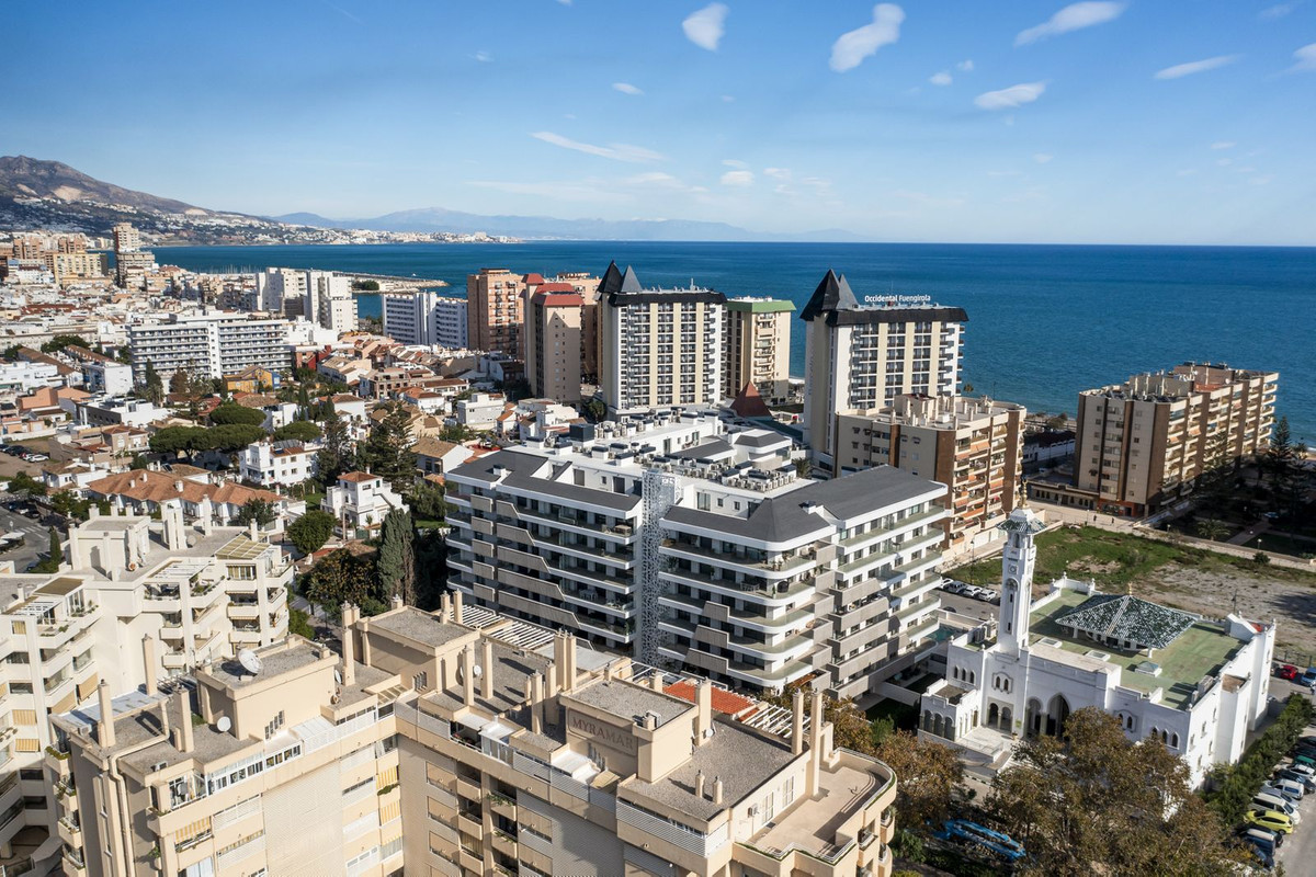 "Jade", kom og se denne fantastiske luksuriøse 2-værelses lejlighed, som er en del af et eksklusivt færdigbygget nybyggeri med 116 premium boliger (færdiggjort i 2024), beliggende mindre end 250 meter fra stranden i Fuengirola. Indflytningsklar og designet til moderne livsstil, denne bolig på anden sal har en rummelig terrasse med en betagende udsigt over bjergene og delvis havudsigt, en elegant indretning og materialer af høj kvalitet. Lejligheden er højt beliggende og vender ikke mod vejen, så du bor midt i byen uden at blive generet af trafikstøj.