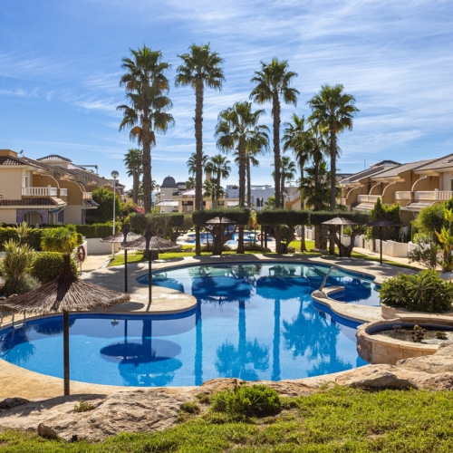 Gated residential complex of Mediterranean style flats with 2 bedrooms. Ideal for those looking for a comfortable and functional home to enjoy the climate and tranquillity of the Costa Blanca.Located in Ciudad Quesada, in Residencial Fortuna, you will have access to its beautiful green spaces and communal swimming pool, as well as enjoying your own outdoor spaces: a large garden of more than 140m2 in this case as it is a ground floor flat ideal for people with reduced mobility.The property comes with: Fitted wardrobes in all rooms. Electric blinds. Aluminium pergola to protect the car with the possibility of installing solar panels. Storage room of +/-5m2 for motorbike. An extra aluminium enclosure at the entrance of the house. Stainless steel ramp. Air conditioning by ducts. The property is delivered with the kitchen fully equipped with Siemens/Bosch appliances. This new residential is surrounded by quiet residential areas and wide avenues, and is within walking distance of all essential services: supermarkets, restaurants, health centre, pharmacies, golf course, dog parks and natural areas such as the Lagunas de Torrevieja... In addition, just 10 minutes away you can enjoy the best beaches of Guardamar and Torrevieja. Cities such as Alicante and its airport are only 35 minutes away by car.One of the last available ground floor units, don't miss it. Ideal property to live all year round or to create a passive source of income by being able to rent out the property for tourism, as this property is close to all that the Costa Blanca has to offer.