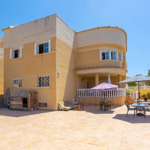 Denne nyrenoverede fritliggende villa i det fredelige boligområde El Chaparral, Torrevieja, tilbyder en perfekt blanding af elegance, komfort og effektivitet. Det er lavet af førsteklasses materialer og har tre rummelige soveværelser med indbyggede skabe og to elegante badeværelser, herunder et luksuriøst badeværelse. Begge badeværelser har stilfuld brusekabine og gulvvarme. Hjertet af villaen er en lys opholdsstue i åbent plan, der er forbundet med et fuldt udstyret moderne køkken. Dette indbydende rum åbner ud til en overdækket terrasse med udsigt over en privat pool med udendørs bruser, perfekt til at nyde den solrige sydvestlige orientering.