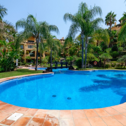 Set within an exclusive gated community, residents enjoy 24-hour security, four outdoor pools, a heated indoor pool, sauna a gym, a paddle & tennis court, and beautifully landscaped gardens.