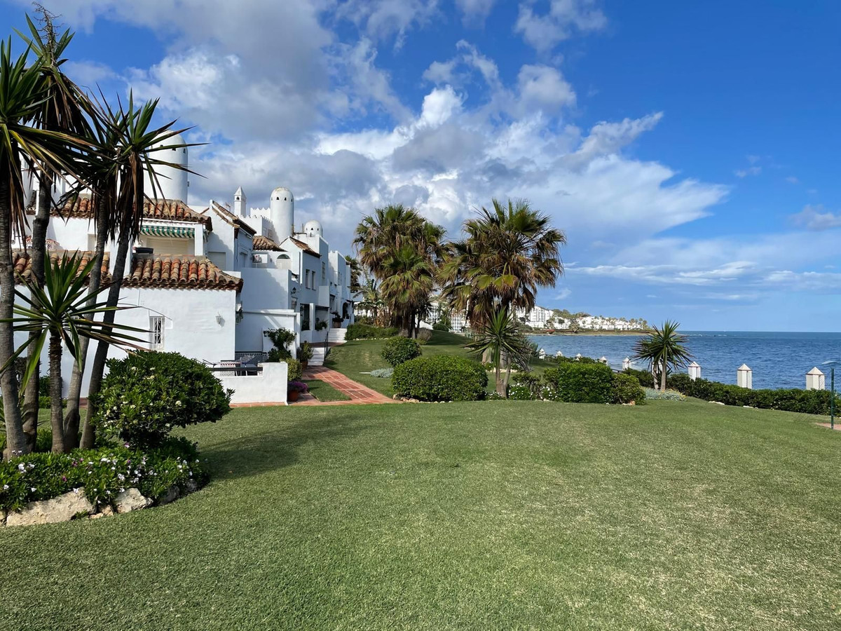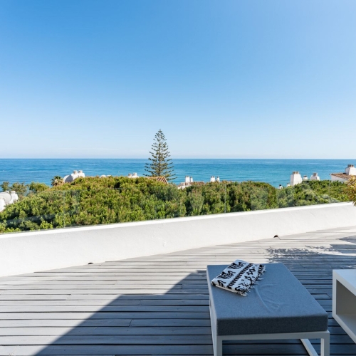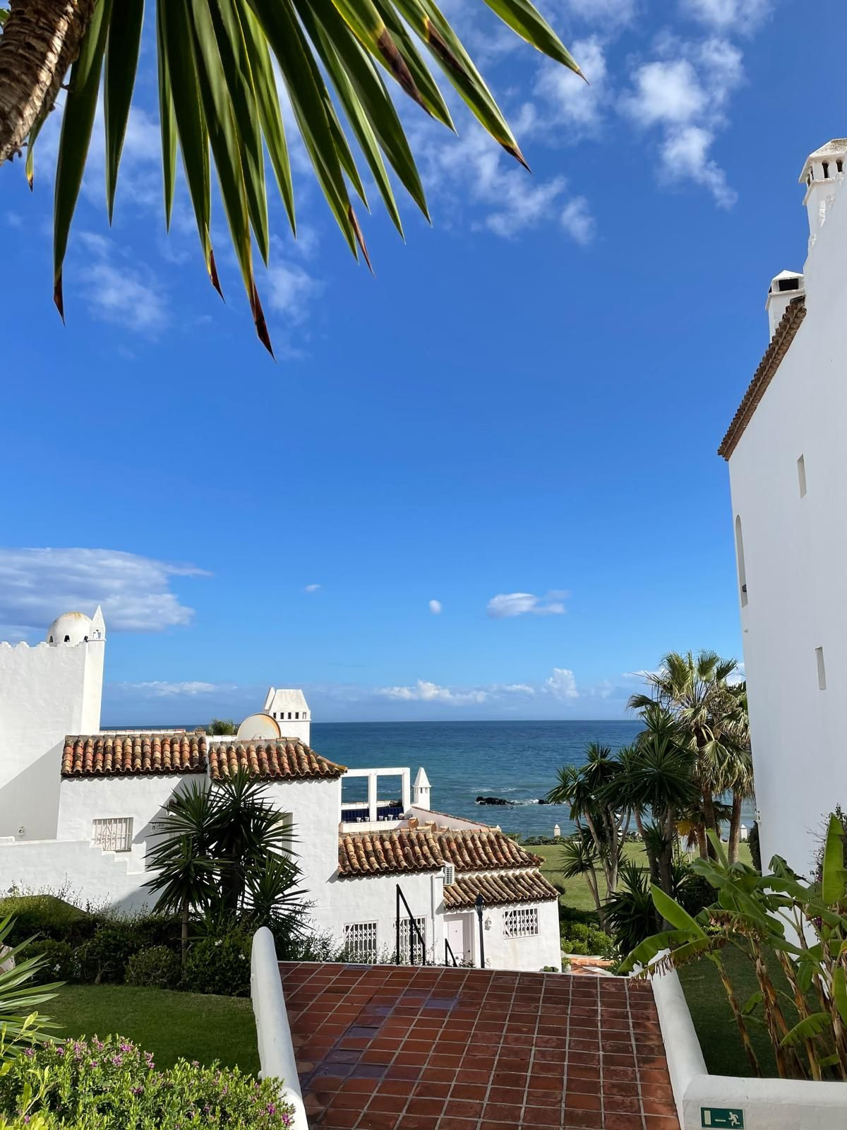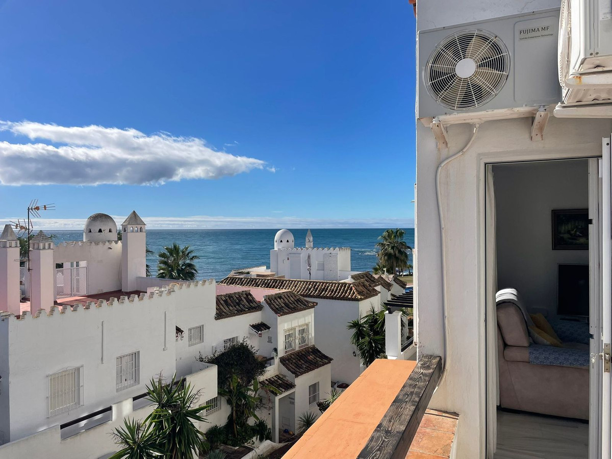 Corner penthouse for sale in one of the best beachfront developments in Mijas Costa, Calahonda. The apartment is on the first floor (no lift) and has 2 exterior bedrooms and 2 full bathrooms (with the possibility of easily converting it into 3 bedrooms), with a large corner and private terrace. From the apartment there is an impressive sea view, from the kitchen, living room, bedroom and terrace. The apartment is sunny all day, especially in winter when the sun is lower. There is new air conditioning (split, hot and cold) in the living room and in the master bedroom. The kitchen is large, exterior with a window and fully equipped, with a serving hatch that opens onto the dining area. The dining room and living room are spacious and sunny. There are built-in wardrobes in both bedrooms. There is a private parking space included in the price. It is a gated community with communal gardens and a large swimming pool facing the sea. You can exit through the community directly to the beach and can walk easily to several restaurants, beach bars, supermarket, pharmacy etc. We have refurbished several apartments of a similar size in the same urbanization for our investors from 2 bedroom to 3 bedroom apartments and we can show you before and after of those units, and you can visit them personally to get an idea of what can be done.