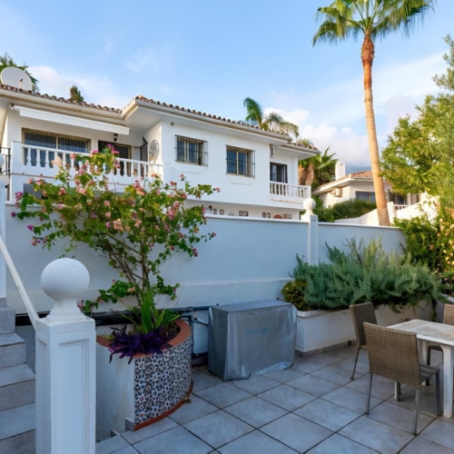 Oplev et charmerende middelhavsparadis med denne fritliggende villa med 3 soveværelser og 5 badeværelser, fuldt renoveret, beliggende i det eftertragtede område Torreblanca. Denne bolig tilbyder en harmonisk kombination af komfort, stil og funktionalitet, perfekt designet til at nyde det afslappede liv på Costa del Sol.