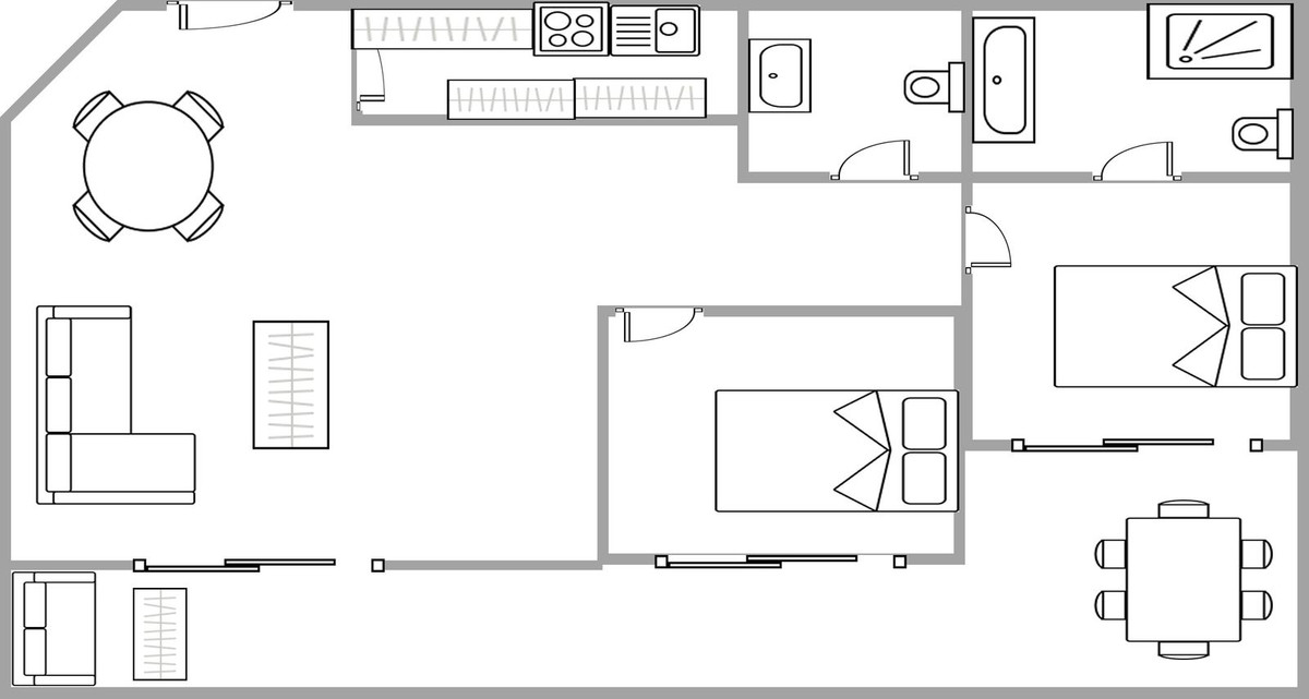 It has two spacious bedrooms with fitted wardrobes and two bathrooms, one of them with en suite bathroom.