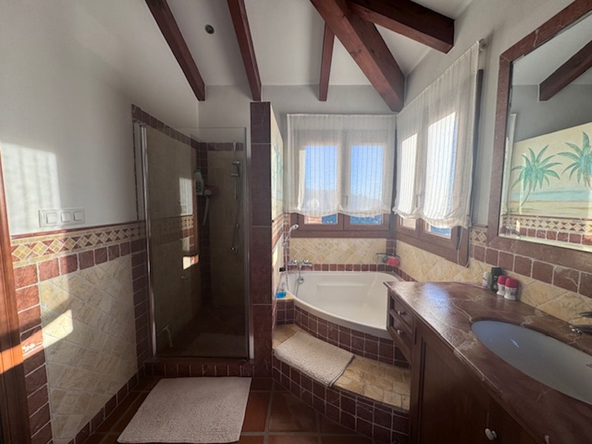 The first floor comprises of a large master bedroom with dressing room and en suite bathroom and a further one large bedrooms and bathroom. All bedrooms have access to a large wrap around terrace with open sea and mountain views.