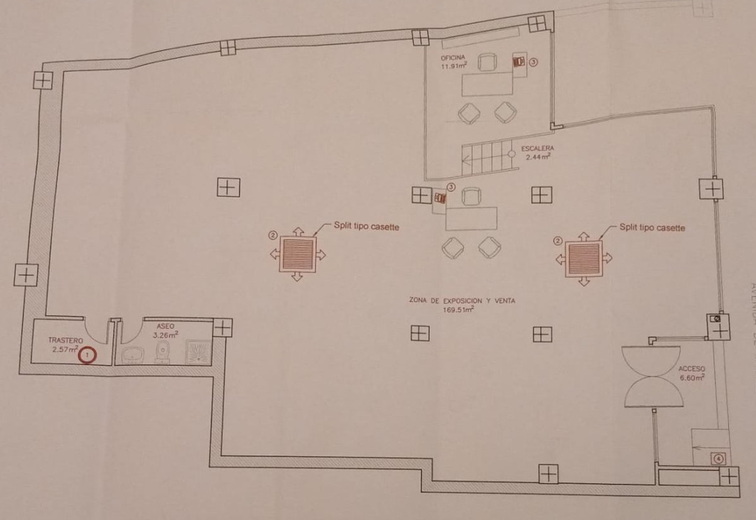 The open-plan space offers great versatility, adapting to multiple commercial uses. It includes an office area, a bathroom, and a storage room, providing functionality and convenience.