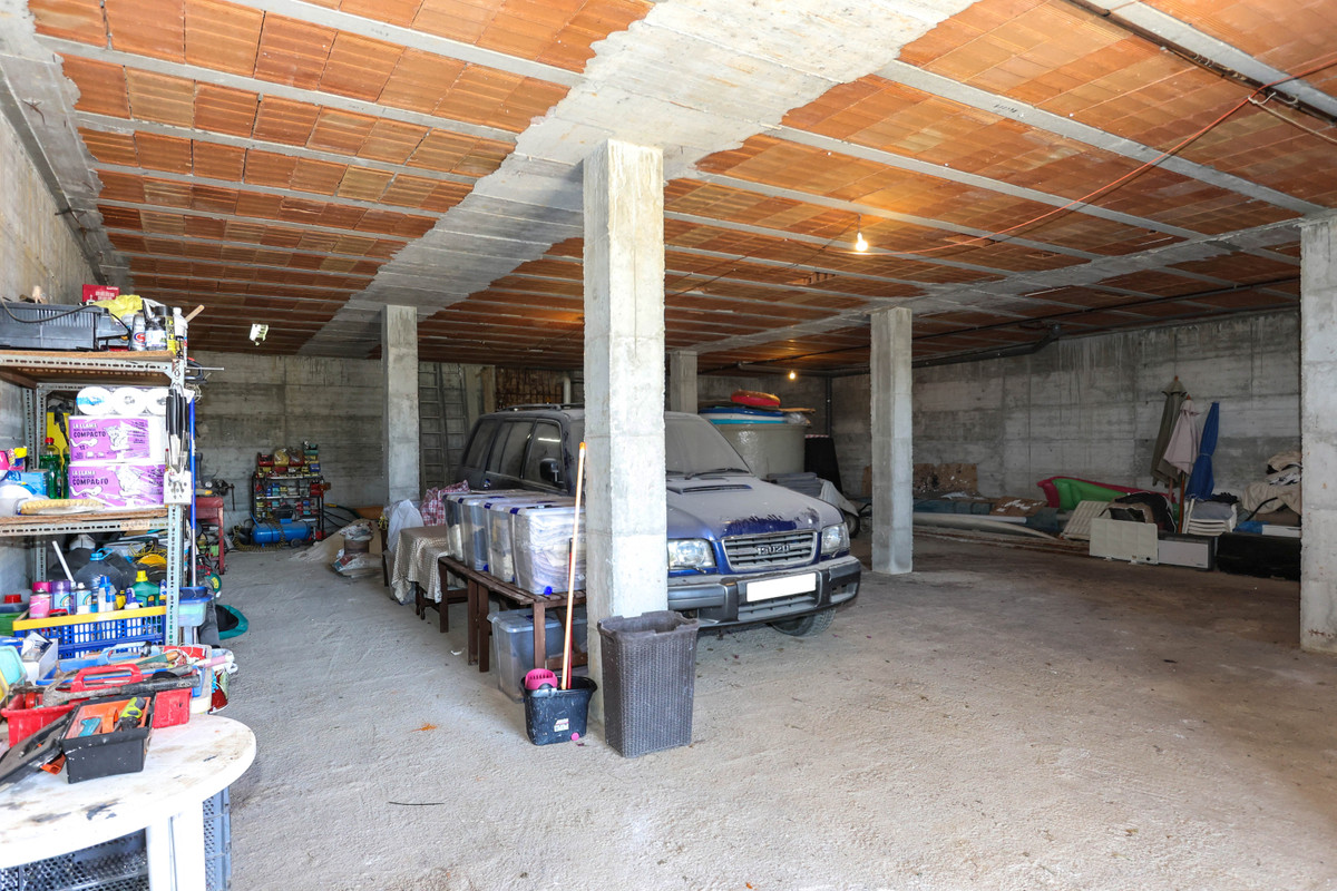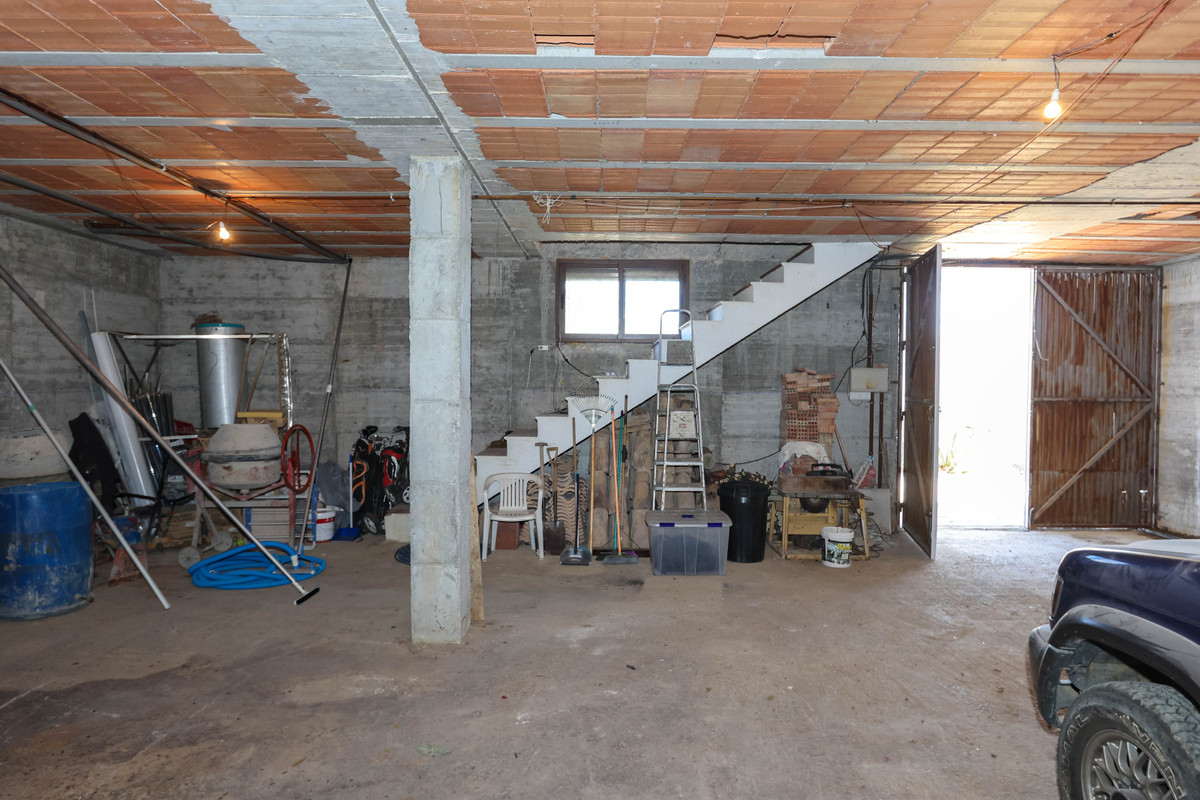 The property sits on the top of a large basement that is currently used for storage and a garage.
