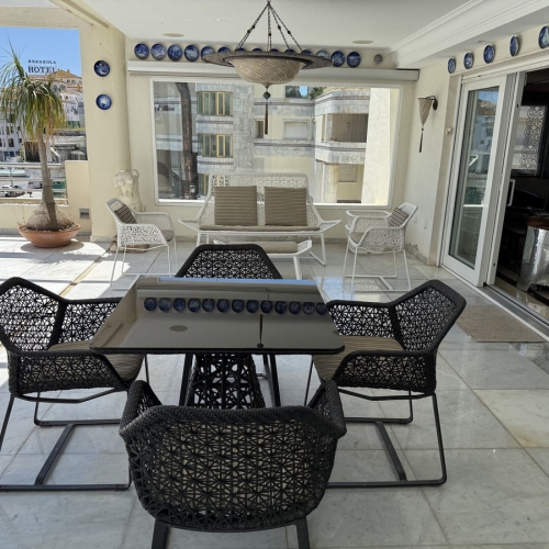This stylish two-bedroom apartment enjoys a privileged west-facing orientation, offering breathtaking views of both the sea and the surrounding mountains. Located in the heart of Puerto Banús, this property places you just steps away from the marina, luxury boutiques, fine dining, and pristine beaches.