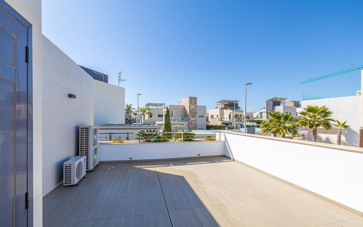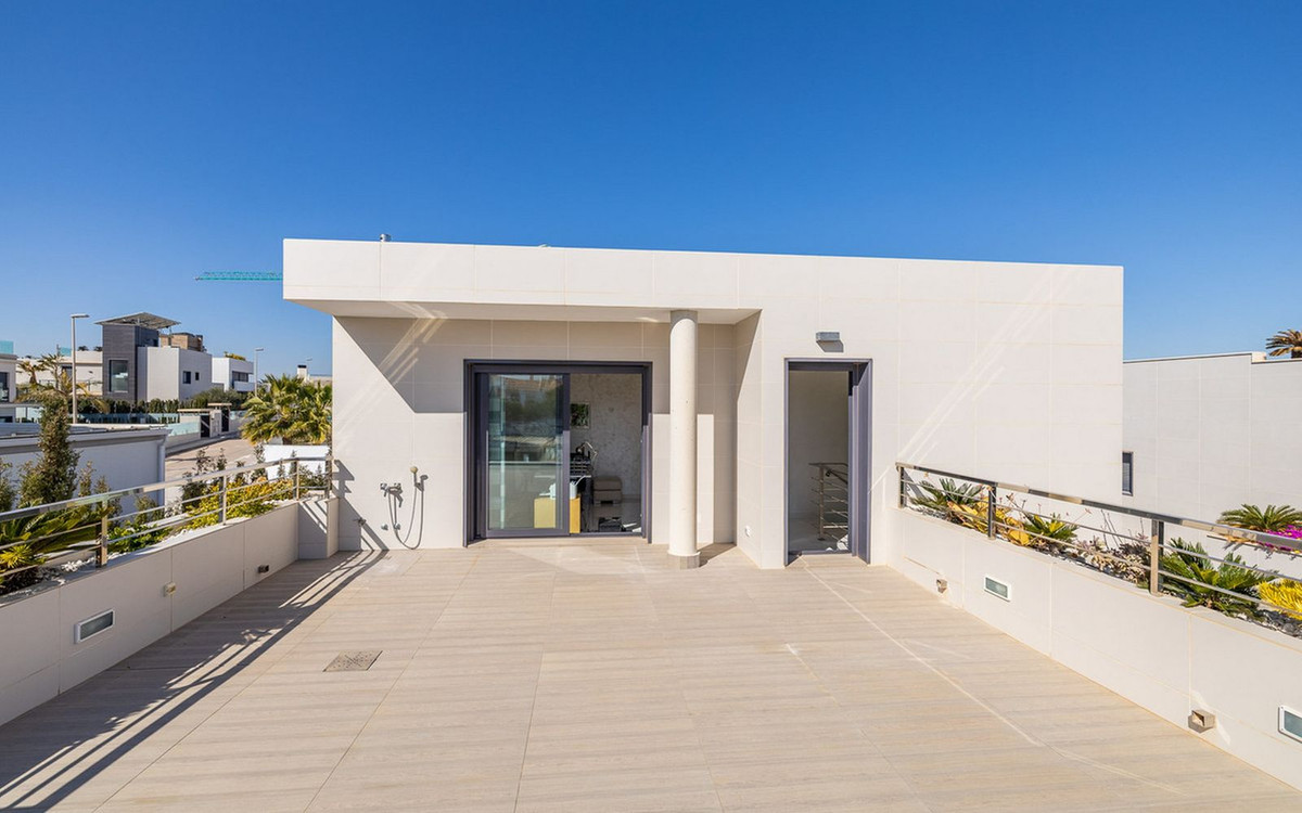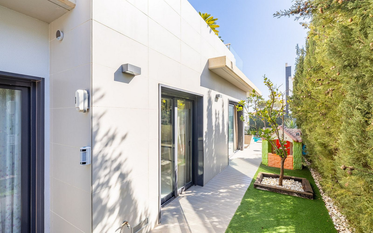 If you are looking for the WOW factor then take a look at this Amazing Detached Villa located in Campoamor. This beautiful villa consists of 4 bedrooms with fitted wardrobes, 3 bathrooms, living/dining area with direct access to the pool and garden and a fully fitted kitchen. The property benefits from a private solarium, terraced areas, parking, electric blinds, underground basement and sold furnished.