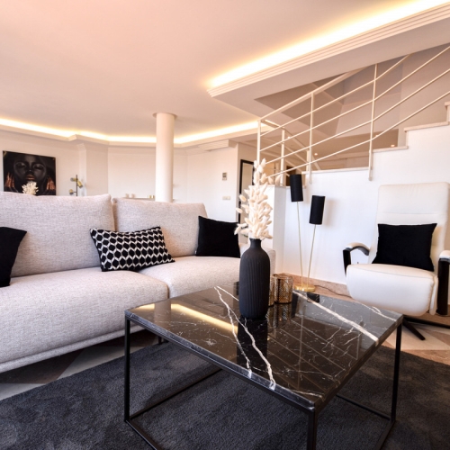 This penthouse is located in one of the most desirable areas of Marbella, known for its beautiful, tranquil, lush landscapes and exclusive living environment. Here, you get the perfect balance between seclusion and proximity to everything you could wish for. Restaurants, shops, cafés, and padel/tennis courts are within walking distance. Golf enthusiasts will also appreciate the proximity to some of Marbella's most prestigious golf courses. The world-famous Puerto Banús harbor and the golden beach are just a 15-minute walk away.