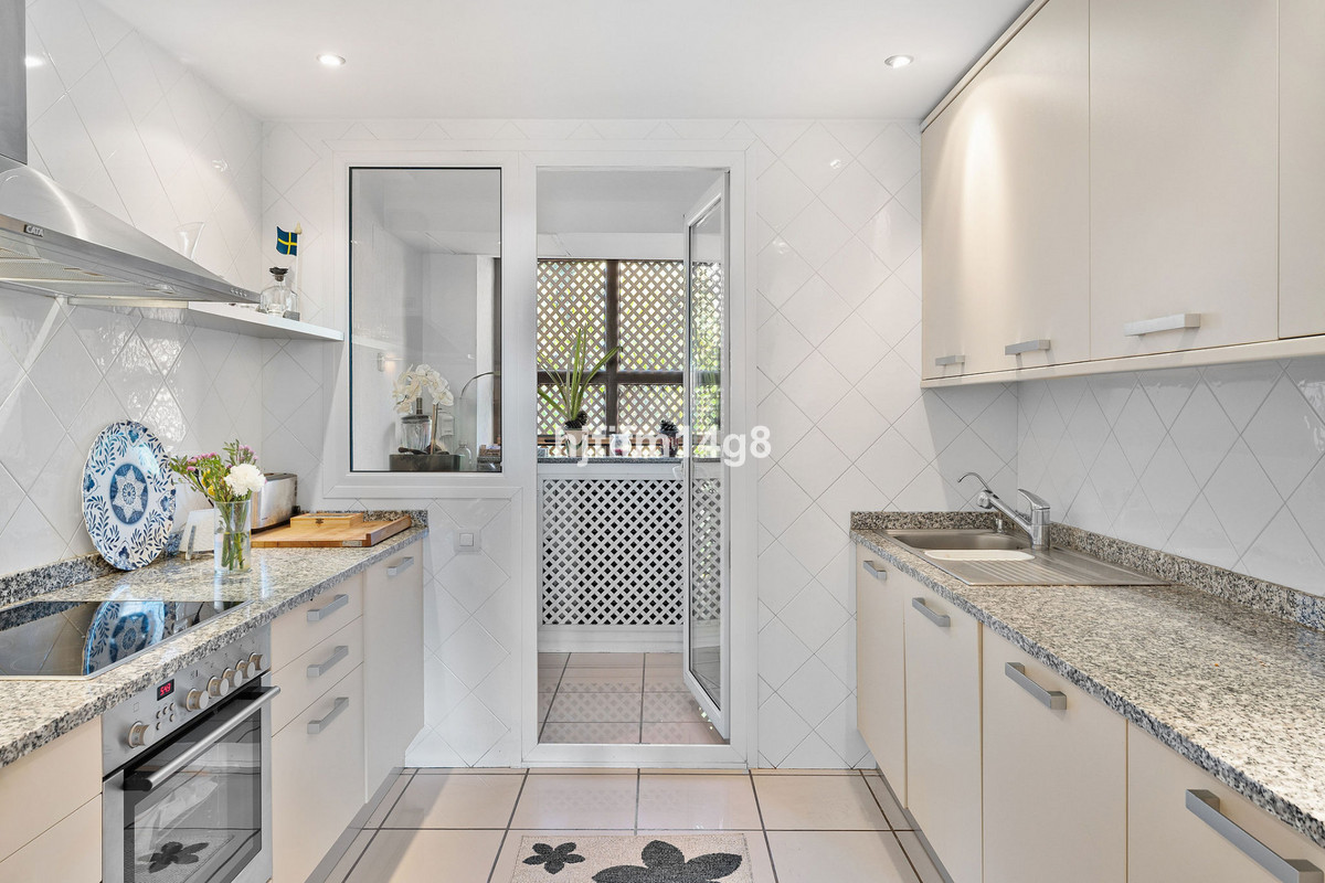 The highlight of this penthouse is the rooftop terrace, an extraordinary outdoor space that is truly one of a kind. The terrace is divided into distinct areas, offering a perfect balance of comfort and functionality. As you ascend to the rooftop, the first section on the left features lots of space for relaxation, from here you access a fully enclosed area with glass curtains, with a kitchen, dining area, and lounge area, all beautifully covered to offer comfort year-round. Continuing through this space, you'll reach another charming section of the terrace with sun loungers, ideal for soaking up the sun. A few steps up from here leads to the private heated pool, where you can enjoy panoramic views while swimming in absolute privacy. The terraces are beautifully landscaped, featuring potted fruit trees and lush plants, creating an oasis of greenery and tranquility. A total space of 170m2 .