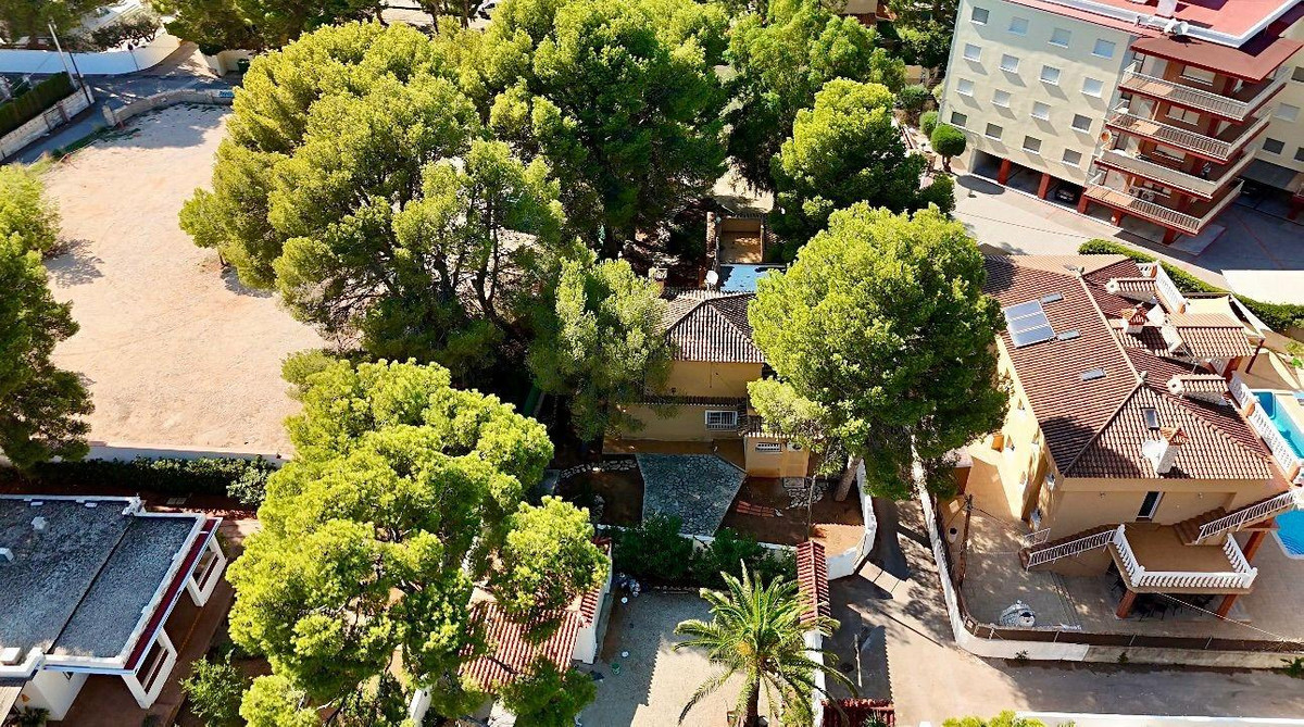 Detached villa with a beautiful garden next to the sea in Las Rotas, Denia, only 100 metres from the cozy beaches and with a perfect southeast orientation.This property has been kept in excellent condition thanks to the fact that it has had only one owner. Its functional and cosy distribution is organised on two floors and a basement.On the main floor, upon entering, we are welcomed by a spacious and bright hall that leads to an elegant living-dining room with fireplace, ideal for relaxing, with direct access to a covered terrace from which you can enjoy the views to the garden. The independent large kitchen has a window to living area and it has a separate laundry room. Furthermore, this floor houses two large bedrooms and a complete bathroom.The first floor is a private retreat where is the master bedroom with an en suite bathroom and access to two terraces offering sea and mountain views.The basement has a large storage room and a garage with capacity for 3-4 vehicles, with direct access to the property, offering comfort and security.Additional features of this property include air conditioning and fitted wardrobes in all bedrooms.Its privileged location, just 100 metres from the beaches and surrounded by a wide range of restaurants and bars on the seafront, makes this villa the perfect choice for those looking for peace and quiet with all the comforts.