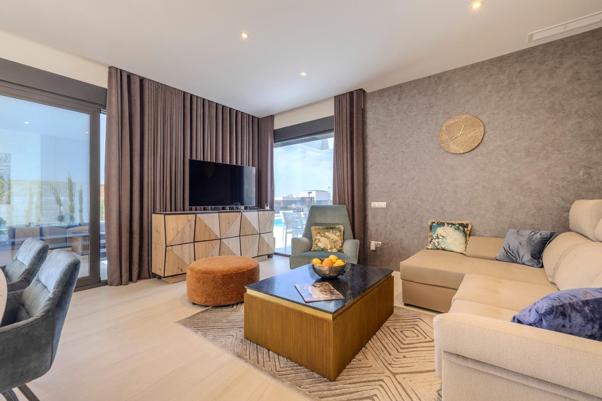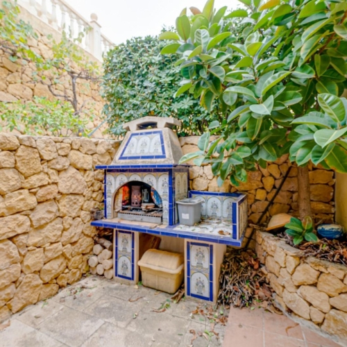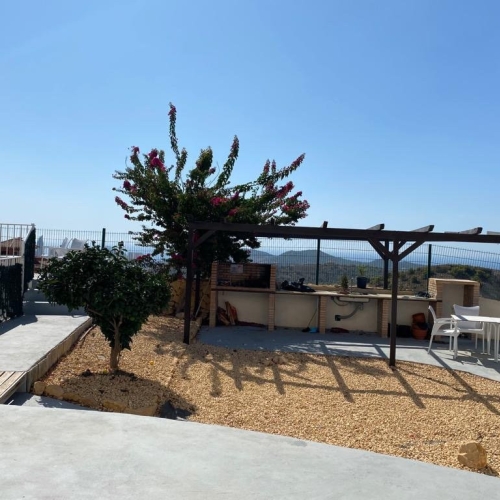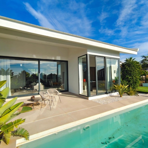 Luxury villa in prestigious Sierra Cortina de Finestrat with sea views!We offer for sale an exclusive new house with stunning sea views, completely renovated in January 2024. With a built area of 350 m², the property is located in a prestigious newly developed area, close to the Sierra Cortina Resort and Villaitana Golf Club.The house has 4 bedrooms, including a multipurpose room situated in the basement, each with its own private bathroom. It is fully furnished and move-in ready, featuring high-quality finishes such as Venetian stucco and natural materials. The furniture, lighting fixtures, and appliances (by Miele) were carefully selected to provide maximum comfort and style since the property was built for personal use.Additional features include:- Underfloor heating - Solar energy installation of 6.5 kW - Electric awnings on terraces - Windows with protective polarized coating - Expanded heated pool of 32 m² with protective cover - High-quality outdoor furniture - Automatic irrigation system - Private parking space - Eufy surveillance system n - Mosquito nets on sliding doorsnThis is a unique opportunity for those looking for a fully equipped home ready to move into. The house is perfect both as permanent residence or investment.