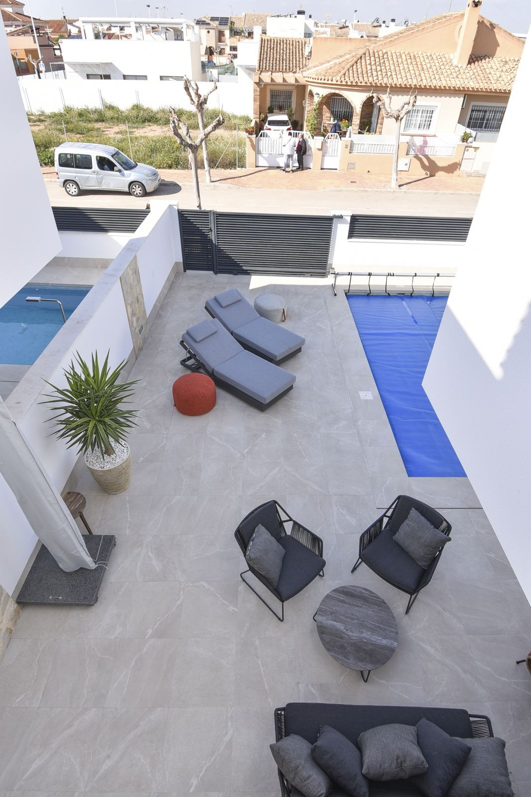 The upper floor has spacious bedrooms, with a master suite that includes a private bathroom and a walk-in closet. The house is equipped with the latest technologies, such as underfloor heating, video surveillance, and solar energy. Enjoy a peaceful environment with the perfect blend of modern design and functionality.