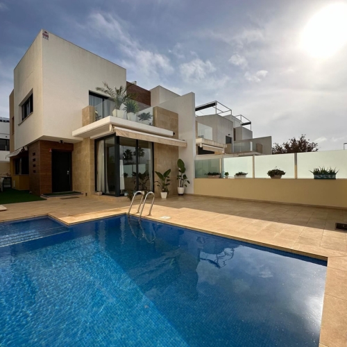 Modern two floor house with a private pool and a spacious garden. Built with high-quality materials, it offers a contemporary design and maximum comfort. The ground floor features an open-concept layout that integrates the living room, kitchen, and dining area, while the bedrooms provide privacy and coziness. Large windows allow plenty of natural light, creating a warm and inviting atmosphere.