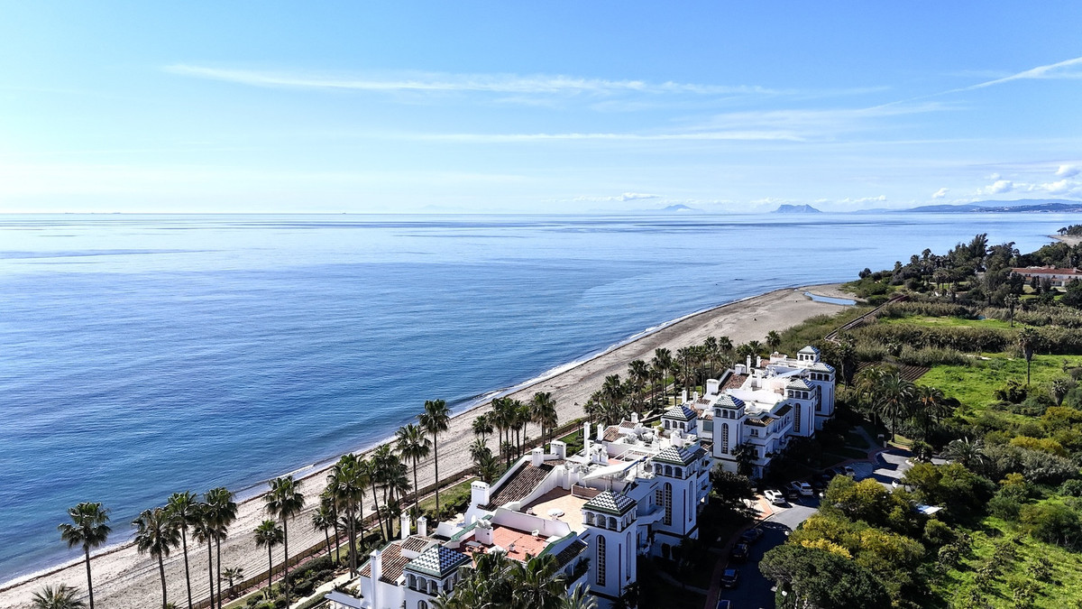 Located in the prestigious Dominion Beach area of Estepona East, this luxurious duplex penthouse offers a combination of elegant living and unbeatable convenience. Situated along the renowned New Golden Mile, the property enjoys a prime location, with direct access to the beach through beautifully landscaped communal gardens. Estepona Centre is just a short drive away, and the property benefits from excellent road connections, including the A-7 coast road, ensuring easy access to Marbella, Puerto Banús, and beyond. The area is well-served by international schools, making it a perfect location for families, while nearby golf courses, sports facilities, and supermarkets cater to various needs.
