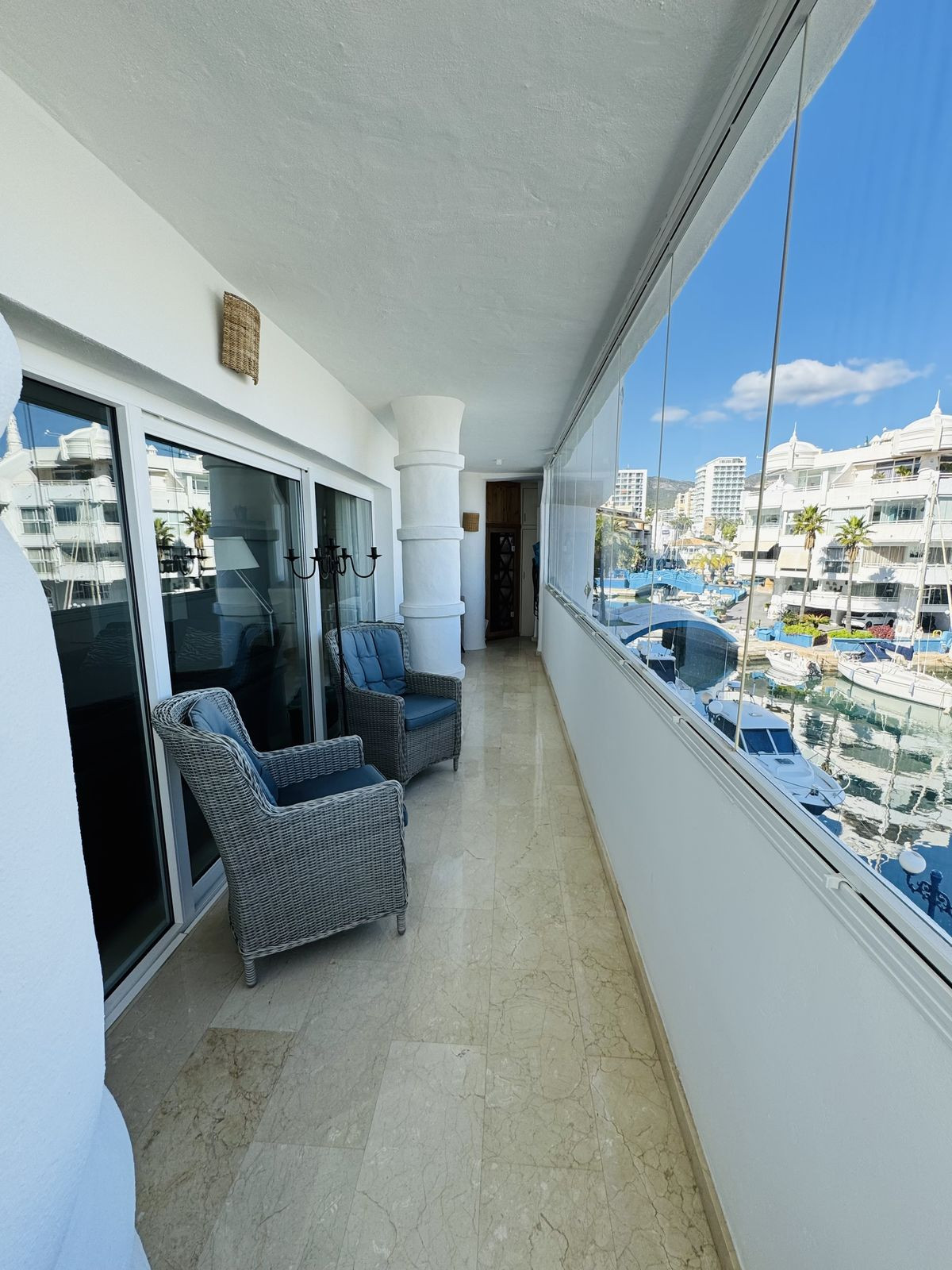 Built in 1990, this well-maintained apartment is located on the 1st floor of a building with an elevator that leads to the roof terrace, where the communal pool is located. With an east orientation, hot/cold heating and air conditioning, it guarantees comfort throughout the year. Puerto Marina, awarded the Blue Flag for Clean Seas in Europe, is the ideal place to enjoy coastal life. Don't miss this unique opportunity!
