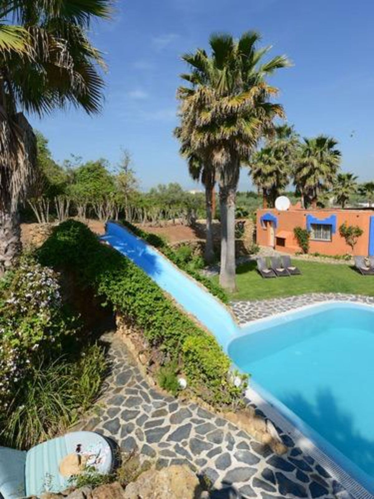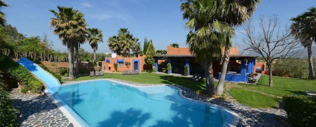 On the same level as the lounge is the large master air-conditioned bedroom which has views across the olive groves. This bedroom also has direct access to the terraces & pool areas. Next to the master bedroom we have a lovely a twin bedroom. Downstairs we have 6 bedrooms all benefit from air-conditioning (3 x twins, 2 of which have an en suite bath and separate walk-in shower room and 3 x doubles with en suite walk-in shower).What makes this property extra special is the outside area. the pool which is directly in front of the veranda is incredible and has its own water-slide built into the tropical garden. The house is surrounded by a large covered terrace which in the summer acts as an alfresco living room plus a modern BBQ also situated close to the pool. Finally we have to mention the The Moroccan Suite: This lovely Moroccan just a few meters from the main house and overlooks the pool & gardens. This air-conditioned room has a double bed with a en suite walk-in shower room. Also plenty of space for parking and majestic driveway to the entrance of the property. A unique property not to be missed.