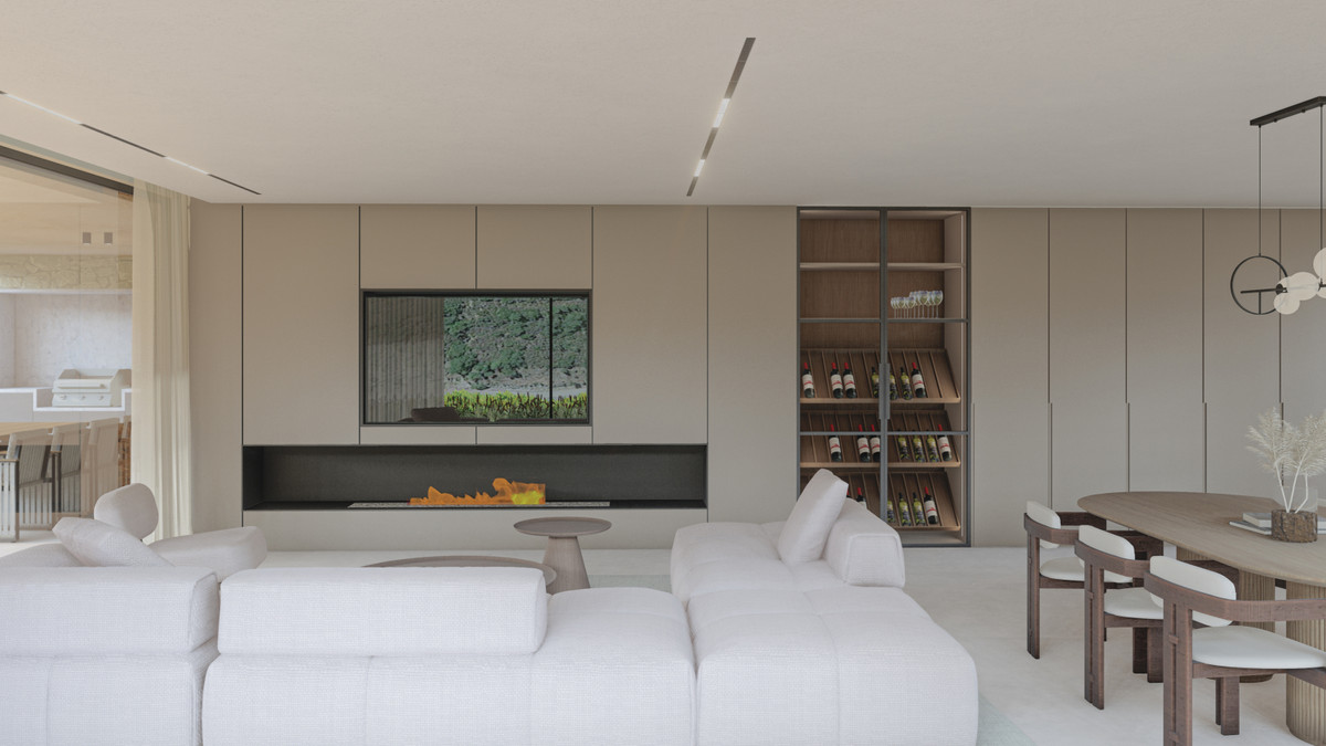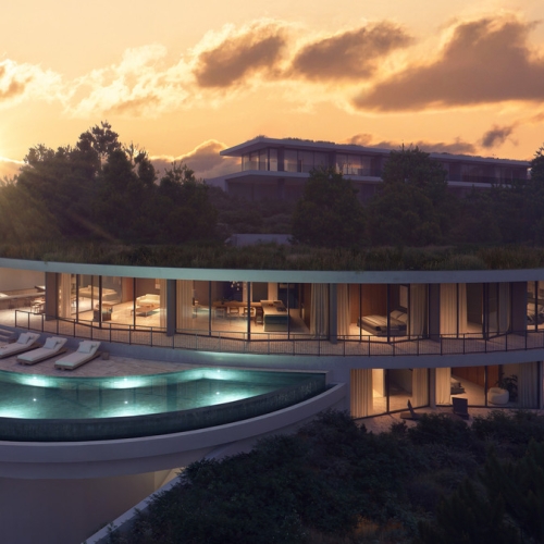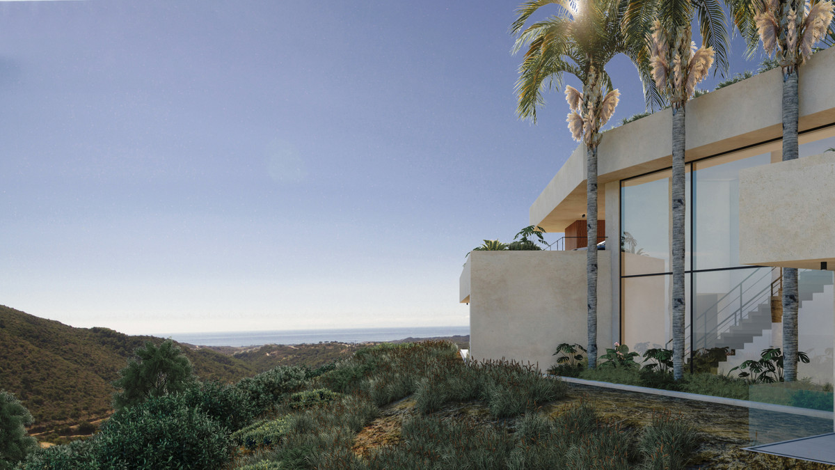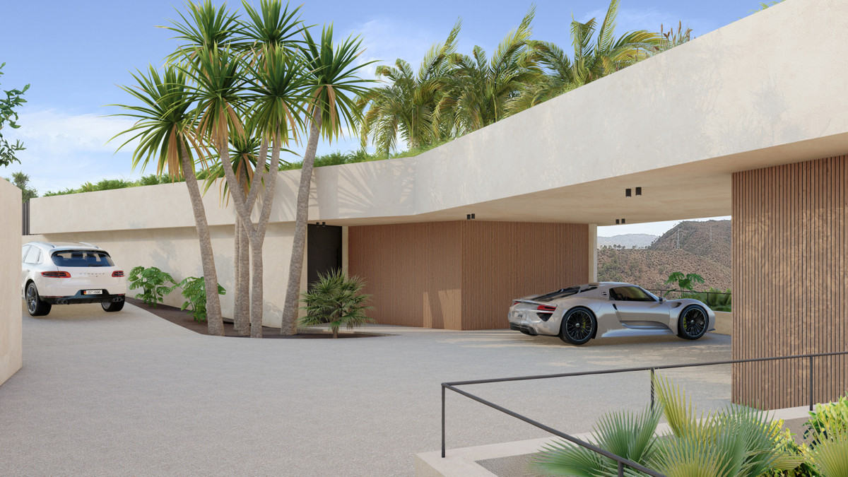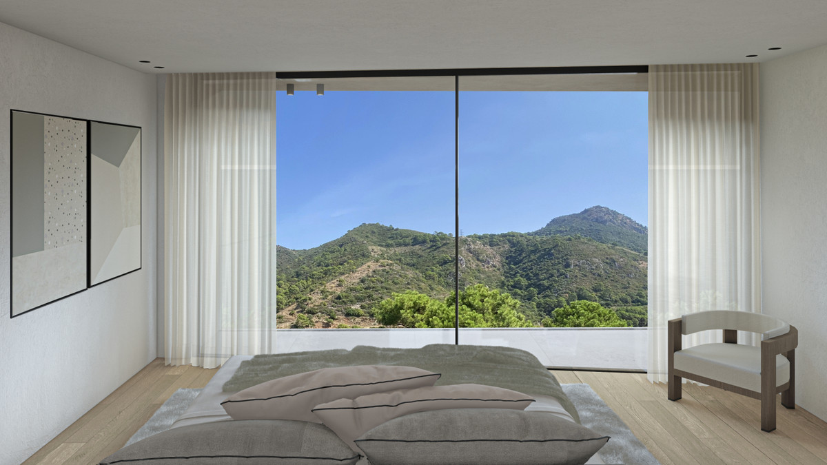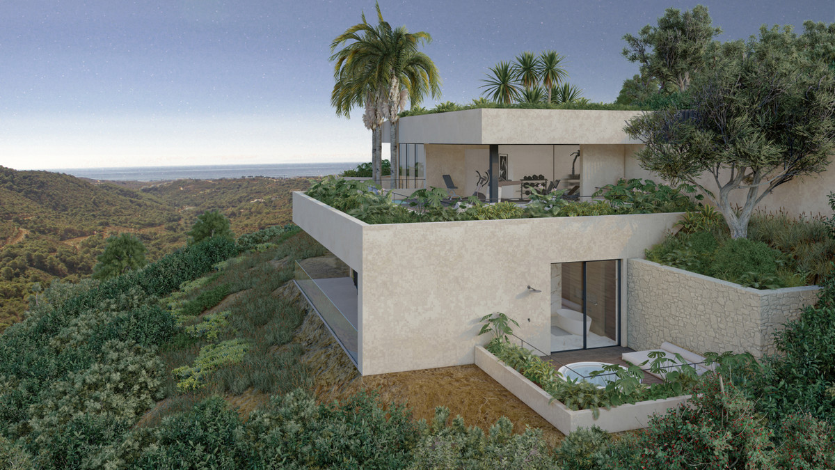 2-etagers moderne designer-villa i et naturligt bakket landskab i Montemayor.