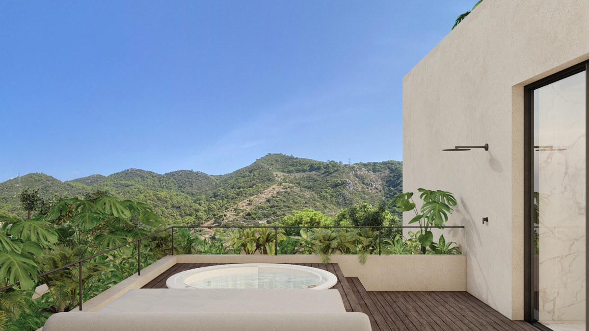 En privilegeret beliggenhed med en betagende panoramaudsigt over kystlinjen og Middelhavet, Gibraltar og den nordafrikanske kyst. 24-timers sikkerhed i et lukket område med overvågningskameraer.