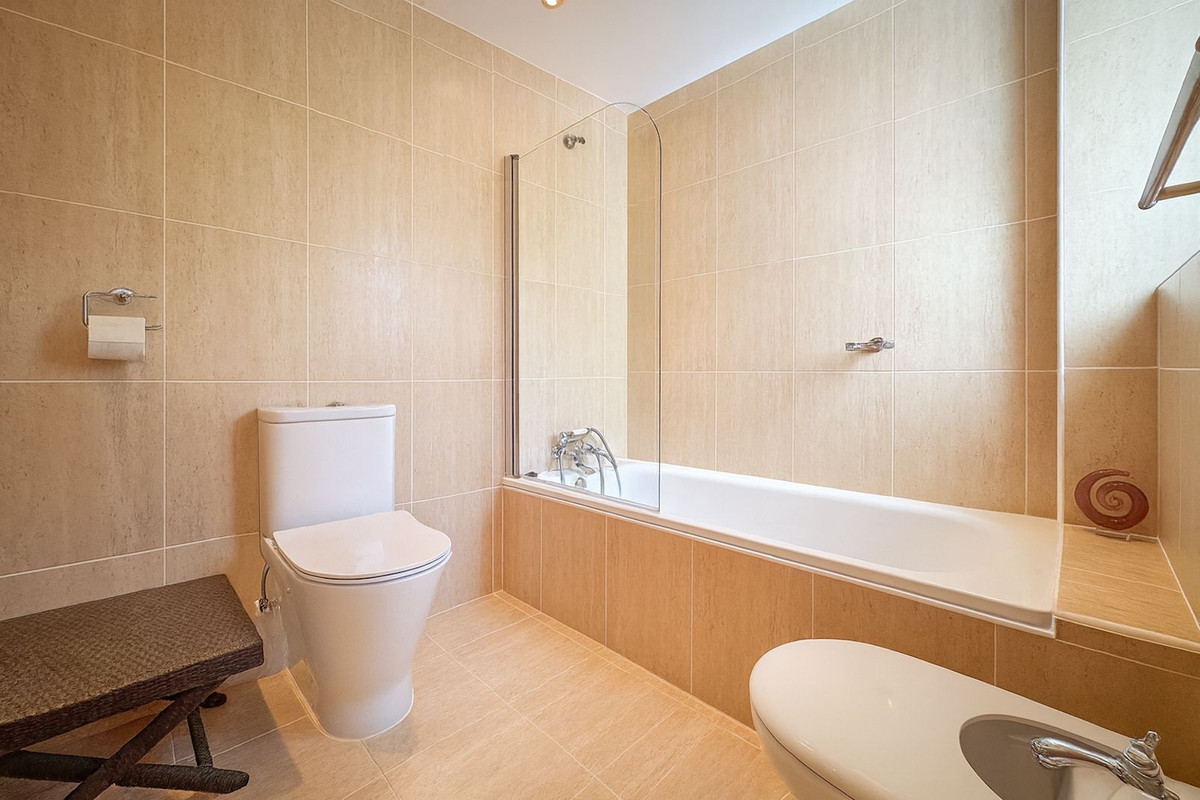 Der er også installeret et badeværelse og toilet, hvilket gør det muligt at skabe en separat lejlighed med privat indgang og direkte adgang til terrassen og poolen.