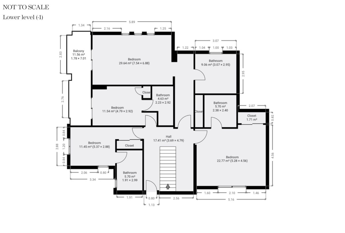 På etagen nedenunder er der fire lyse og rummelige soveværelser med en-suite badeværelser og indbyggede skabe.