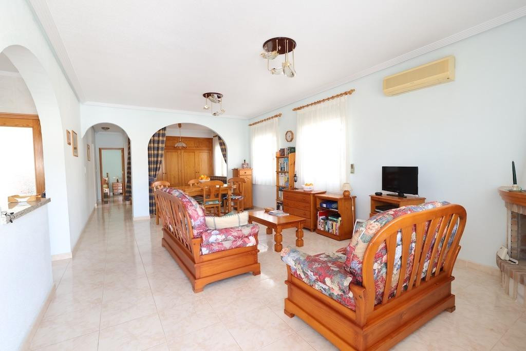 We present this charming detached villa located in the exclusive area of Los Balcones, with a 419 m² plot and a 126 m² single-story house, ideal for enjoying comfort and tranquility. . . Key features of the property:. . - 2 bedrooms (originally 3 bedrooms), offering a spacious and versatile space that can be adapted to your needs.. - 2 full bathrooms, one of them en suite, providing added comfort and privacy.. - Fully equipped open-plan kitchen, with a closed gallery that offers extra space and functionality.. - Spacious living-dining room with a fireplace, creating a cozy and warm atmosphere.. - The property is sold furnished and has air conditioning for optimal comfort throughout the year.. - Private pool of 3.5 x 8 m, perfect for relaxing and enjoying the Mediterranean climate.. - Storage room for additional space.. - Large terrace with barbecue, ideal for outdoor gatherings and enjoying sunny days.. - Closed garage for secure and convenient parking.. - Solarium with panoramic views, a perfect place to relax or enjoy the scenery.. This villa is perfect for those seeking a spacious and comfortable home in a peaceful location, close to all services. Don't miss the chance to see this wonderful property! Contact us today to schedule your visit. has a private pool 3.5 x 8 m, storage room, large terrace with barbecue, closed garage and solarium.