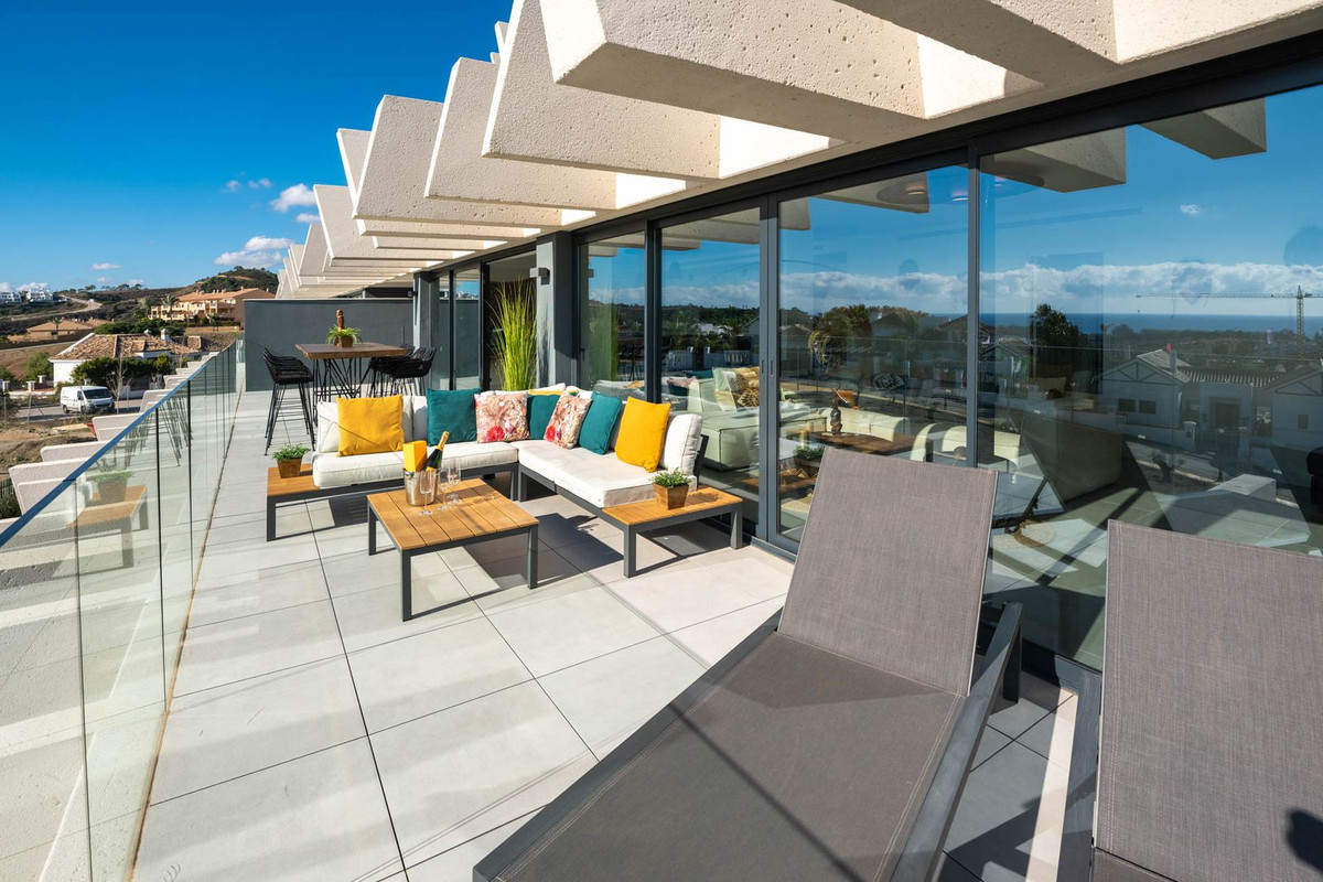 Denne nybyggede sydvendte lejlighed på 250 m² blander moderne design med afslappet boho-charme. Med 3 rummelige soveværelser, hver med eget badeværelse, og en 70 m² stor terrasse med betagende 180° havudsigt over Gibraltar og Atlasbjergene, er dette et sjældent fund.