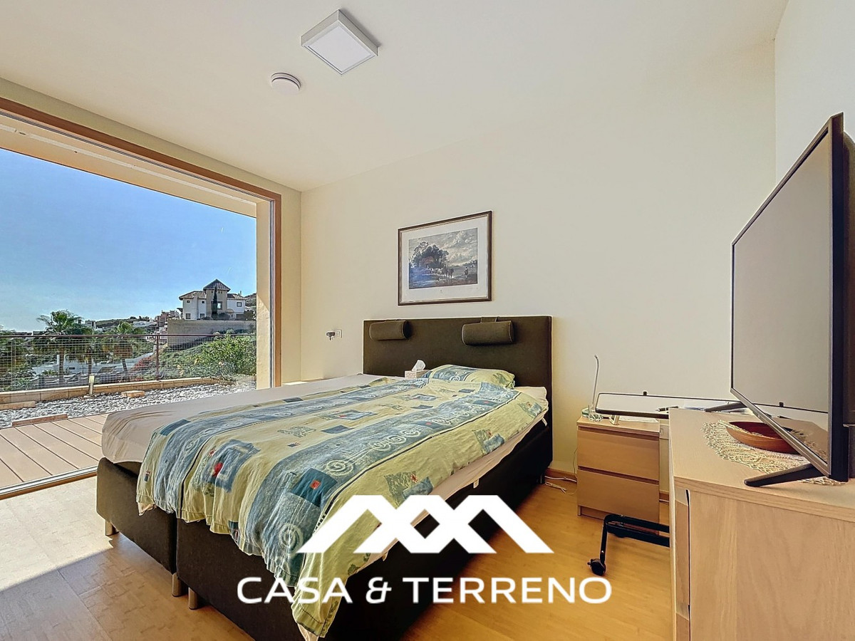 Denne luksuriøse middelhavsvilla i Torrox, Málaga, er fordelt på to etager og tilbyder en betagende havudsigt. Ejendommen er designet med bæredygtighed i tankerne og er et ægte nulenergihjem, der opretholder en behagelig temperatur året rundt takket være dets højkvalitetsisolering og komfortventilationssystem. Solpaneler forbedrer energieffektiviteten yderligere.Stueetagen har en åben stue med et slankt og moderne køkken, udstyret med lyse skabe og integrerede apparater. Den rummelige stue er lys og luftig og blander problemfrit indendørs og udendørs rum gennem store glasdøre, der åbner ud til en solbeskinnet terrasse. Denne terrasse tilbyder en fantastisk panoramaudsigt over havet og det omkringliggende landskab og har en privat swimmingpool, hvilket gør den til et ideelt sted for udendørs spisning og afslapning.Villaen kan prale af tre velindrettede soveværelser, herunder en master suite med eget badeværelse. De yderligere to soveværelser deler et stilfuldt designet badeværelse med moderne inventar, såsom brusekabine og flydende vaskeskabe. Et kontorlokale med indbygget opbevaring giver et dedikeret område til arbejde eller studier.Et iøjnefaldende træk ved hjemmet er dets tilgængelighed. En elevator forbinder begge etager, hvilket sikrer komfort og bekvemmelighed for alle beboere. Villaen indeholder også rigelige opbevaringsløsninger med indbyggede skabe i soveværelserne og yderligere organiserede rum i hele huset.Udenfor forstærker den anlagte have middelhavsstemningen og tilbyder et fredfyldt tilflugtssted. Der er carport til sikker parkering. Ejendommen ligger på to byggegrunde, hvilket giver mulighed for at opføre yderligere strukturer, hvis det ønskes.Denne villa er designet af den nuværende ejer og inkorporerer unikke arkitektoniske elementer og gennemtænkte detaljer, der adskiller den. Dette hjem kombinerer middelhavscharme med moderne bæredygtighed og er et perfekt fristed i hjertet af Costa del Sol. Vi er glade for snart at kunne præsentere denne drømmeejendom for dig, enten personligt eller via virtuel visning. Fordi denne verden er unik - ligesom vores Axarquía. I Andalusien. På Costa del Sol. Her, på livets solside...