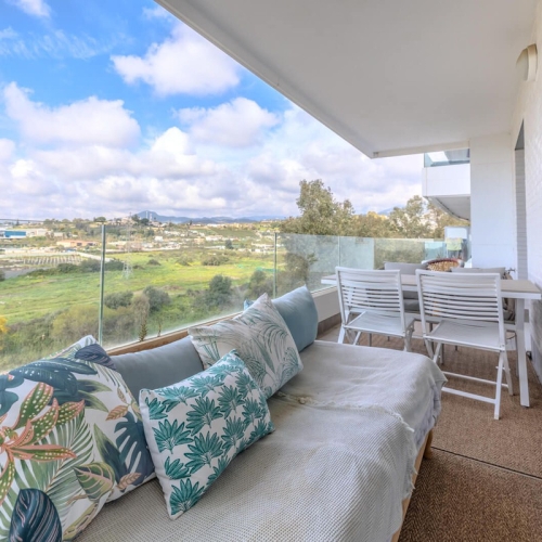 A spacious 4 bedroom apartment situated in the area of La Campana, with plenty of amenities right on the doorstep and just a 10 minute drive to the beach. The apartment is perfect for permanent living or for a family due to the ample space that it offers. The living room is large and bright, with two big French windows that lead out on to two terraces. This space easily accommodates a dining area as well. There is a fully fitted kitchen with a separate laundry room. The bedrooms are situated off to one side and all are fitted with built-in wardrobes. The Master bedroom has an ensuite bathroom, with the others sharing a family bathroom. An underground parking space is included in the price.