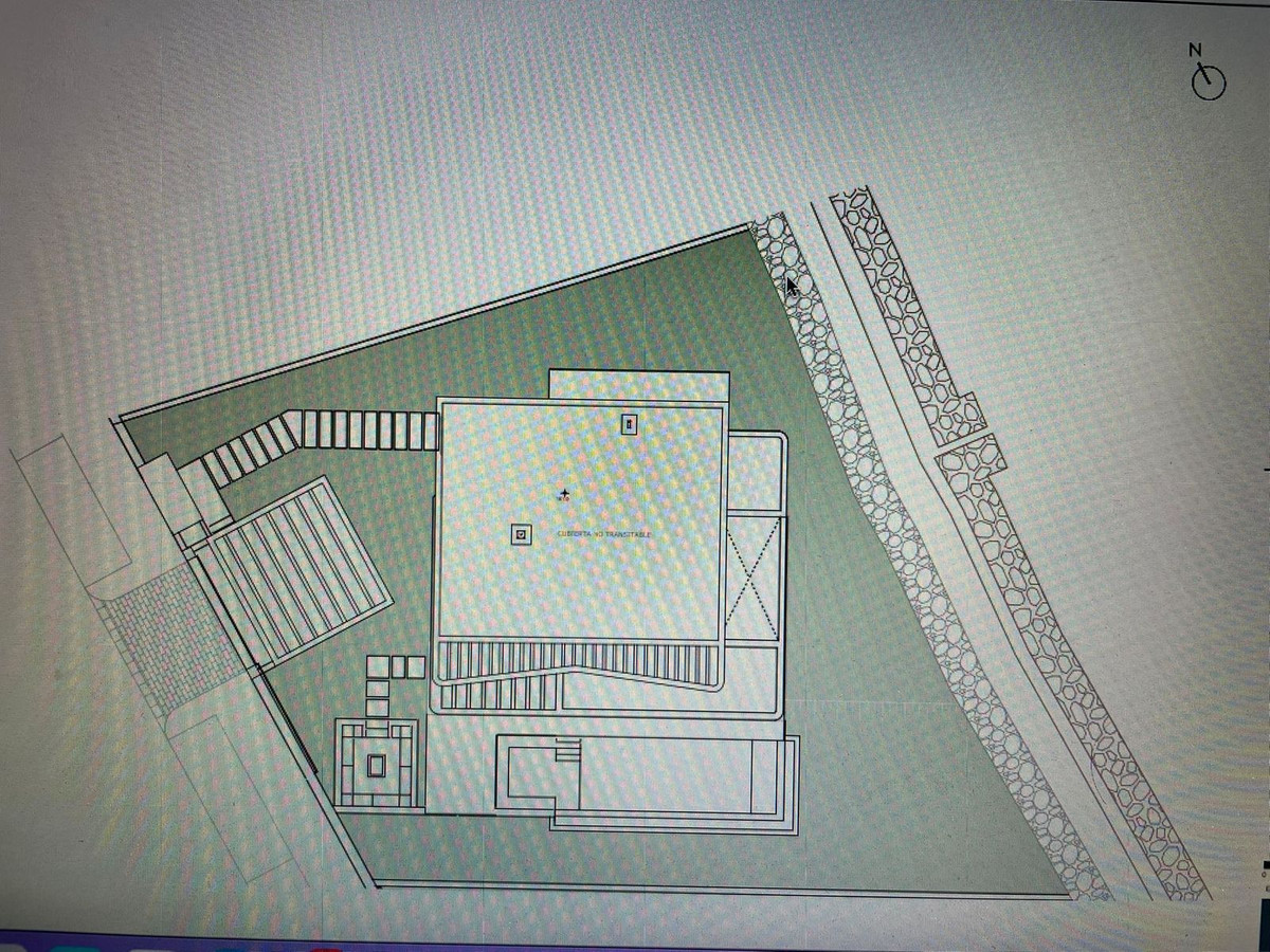 Landscaped garden with irrigation system, palm trees, olive tree, flowers and bushes
