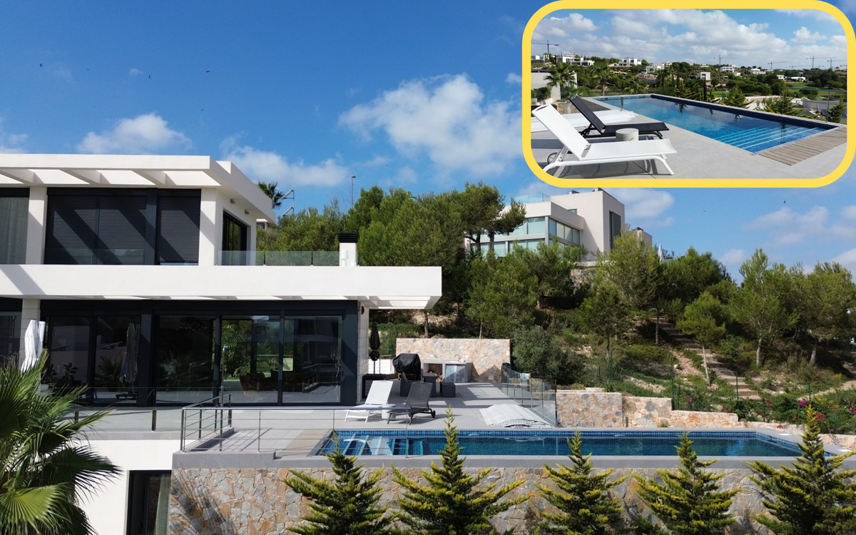 A unique luxury villa in the prestigious municipality of Madroño - Las Colinas Golf Experience refined living in this spectacular villa, located in the exclusive community of Madroño, within the famous Las Colinas Golf and Country Club. Renowned for its beautiful countryside, championship golf course and unrivaled seclusion, Las Colinas is located in the heart of the Orihuela Costa, just a short drive from white sandy Mediterranean beaches, vibrant shopping and other world class golf courses. The most important information about real estate Ideally situated on a private lot with access to a second-line golf course, this luxurious home offers unobstructed 180-degree panoramic views of the lush greenery. The villa harmoniously combines modern architecture with high-quality finishes, creating a space that is both functional and beautiful. On the ground floor there is a spacious open space that opens onto a large terrace, perfect for alfresco dining and enjoying the stunning scenery. There are additional terraces on the top floor providing a private retreat where you can enjoy the tranquil atmosphere. An extraordinary lifestyle The spacious basement of this villa offers endless possibilities, including a fully equipped cinema room, gym and the possibility to create an additional fifth bedroom or multi-purpose space if required. Located at the prestigious Las Colinas Golf Club and Country Club, the resort offers 24-hour security, a tranquil location surrounded by nature and access to a range of first-class amenities, including refined cuisine and a state-of-the-art kitchen. the modern gym. and sports facilities. More than just a home, it's a sanctuary, perfect for working from home or spending time with family in ultimate luxury. Perfect location Located in Orihuela Costa, Las Colinas is simply: The Blue Flag beaches are just a short drive away. Near Zenia Boulevard, the largest shopping center in the Costa Blanca region. Just minutes from other world-class golf courses and local amenities. The house of your dreams is waiting for you This beautiful villa is a rare opportunity to own a piece of paradise in one of the most sought after locations in Spain. With an unrivaled combination of luxury, location and lifestyle, this property is perfect for those who appreciate the finer things in life. Book an appointment today and make this unique villa your own.