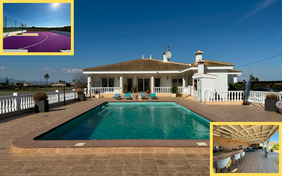 This extraordinary estate offers not just one, but two complete villas on an expansive 12,900m² plot, delivering ultimate space, privacy, and endless possibilities. Whether you're looking for a dream home for a large family, a lucrative rental investment, or a private retreat, this property is a rare find.The main villa is designed for high-end living, featuring 3 spacious bedrooms and 3 luxurious bathrooms, while the guest house includes 3 bedrooms and 1 bathroom—ideal for visitors, extended family, or rental income.Step outside and be amazed by the resort-like amenities. A massive swimming pool invites you to cool off under the Spanish sun, while the LA Lakers-style basketball court and private football pitch make this a paradise for sports lovers. A dedicated outdoor chill area, complete with a fire pit lounge, sets the scene for unforgettable evenings under the stars.The estate offers total privacy, stunning mountain views, and plenty of space to embrace a self-sufficient lifestyle—grow your own vegetables, create your dream garden, or simply enjoy the open space.From the high-end interior to the breathtaking outdoor setting, this property is the definition of luxury, freedom, and exclusivity. And with both properties fully legal and included in the price, this is an opportunity you don't want to miss!