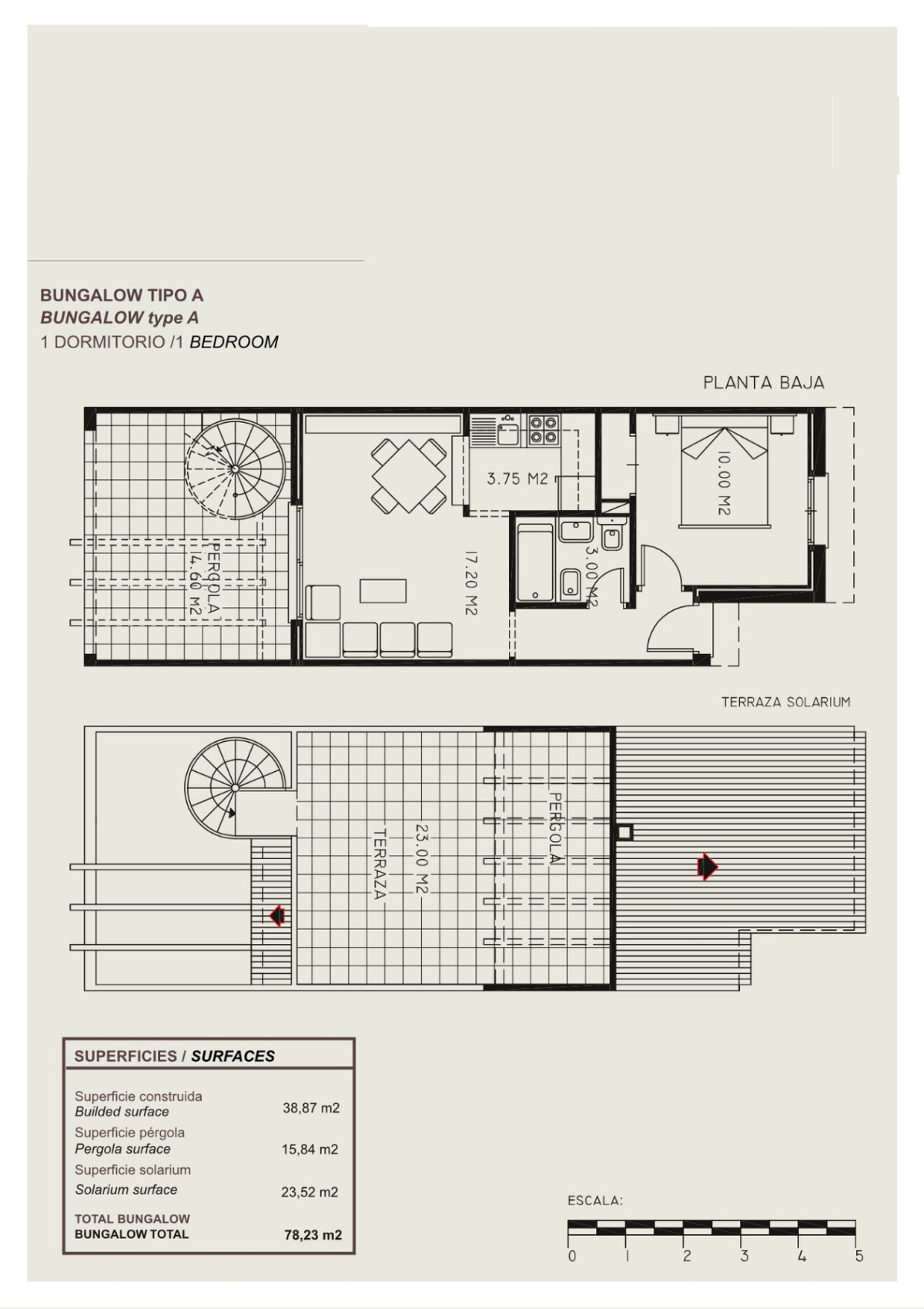 These bungalows consist of a lounge-dining room, kitchen, bedroom and bathroom plus terrace or solarium. Air conditioning.