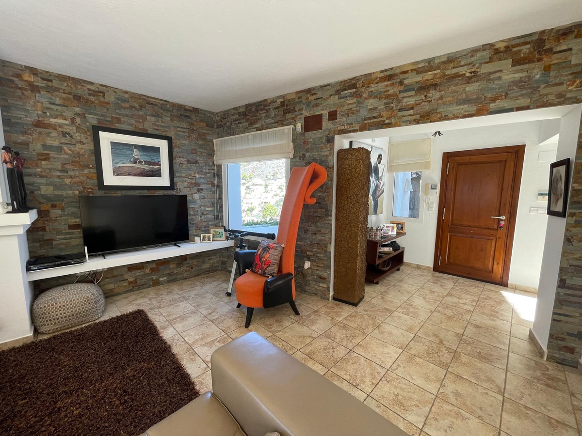 Villa Solace "The Bond Villa" This delightful Ibizan-styled villa is owned by two world-acclaimed film and theatre producers, which gives a clue as to where the name of this villa came from. Perches on the hillside above the neighbouring villas look over the Valley of El Portet; this villa could be a setting out of a James Bond film, with dramatic panoramic open views of the Benrnia Mountains and the turquoise blue sea.