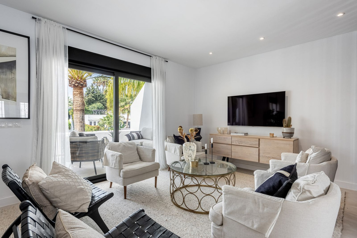 Located in one of the most popular communities in Nueva Andalucía, the apartment has undergone a careful total renovation with a focus on quality and design. It offers two generous bedrooms, two elegant bathrooms and a modern, open-plan layout where the kitchen seamlessly meets the living and dining area - perfect for both everyday life and social occasions.