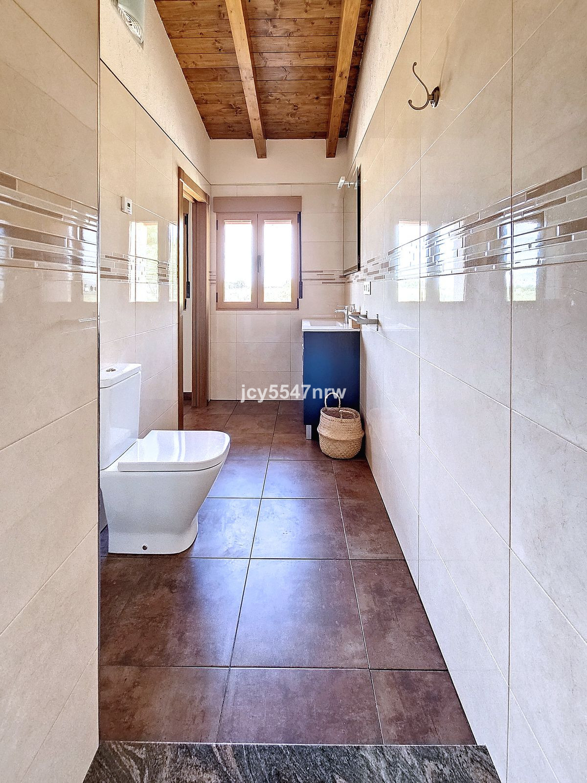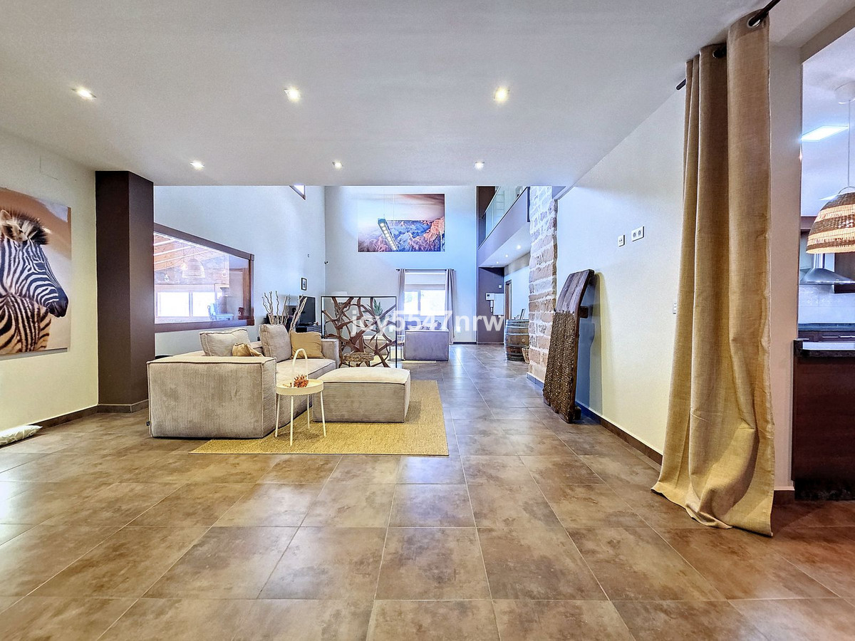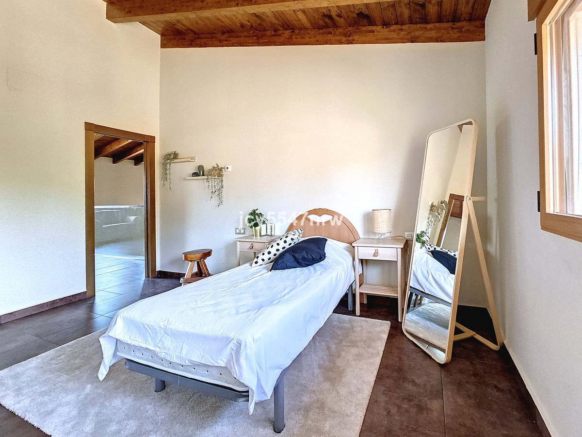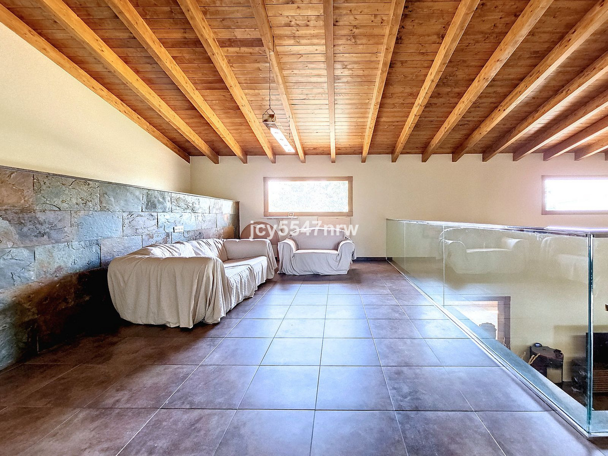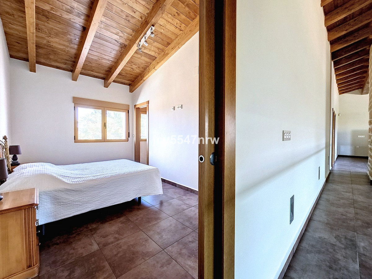 It was once an old bodega (winery) and has been fully renovated to an exceptionally high standard. On the ground floor, the property features a spacious entrance hall and a stunning large open-plan living/dining room with vaulted beam ceilings. The high-quality kitchen/breakfast room is fully equipped with granite worktops, a freestanding wood-fired Aga, and a separate utility room with wine storage. The heating and hot water system are located in the boiler room. Also on the ground floor is a large double bedroom with an en-suite bathroom and built-in wardrobes, French doors leading to the garden, and a large wardrobe closet.