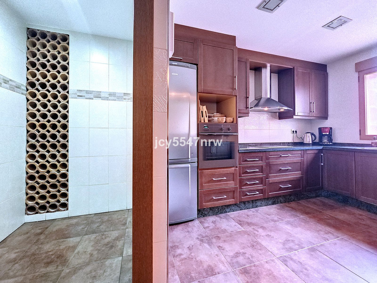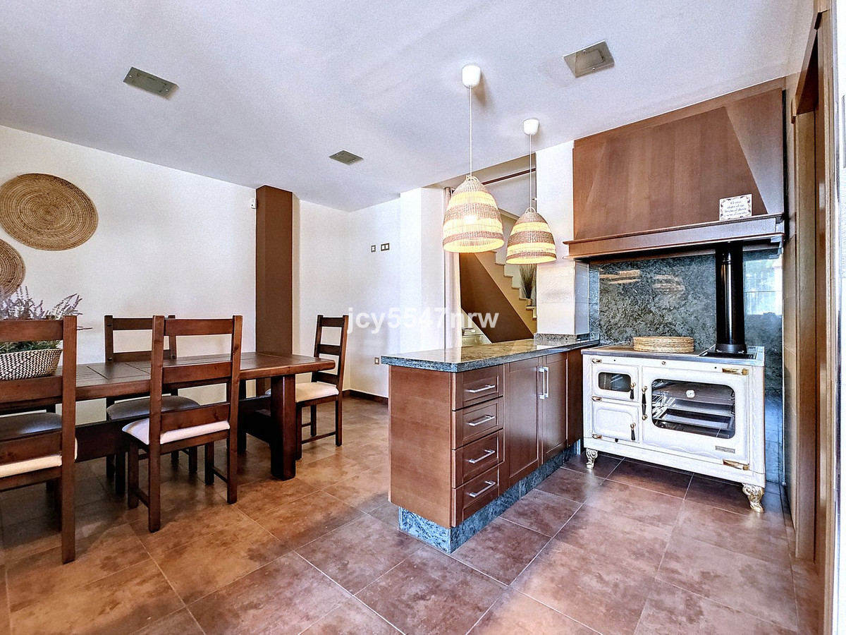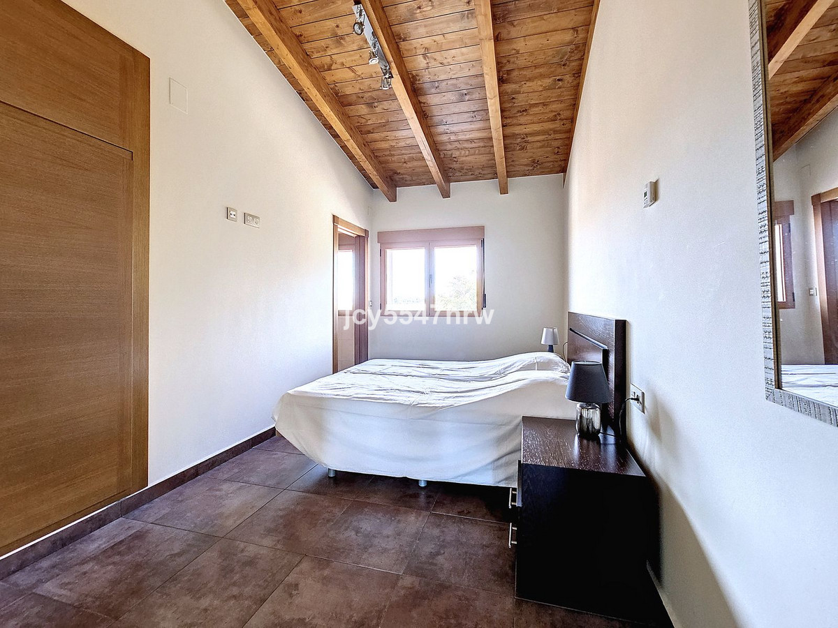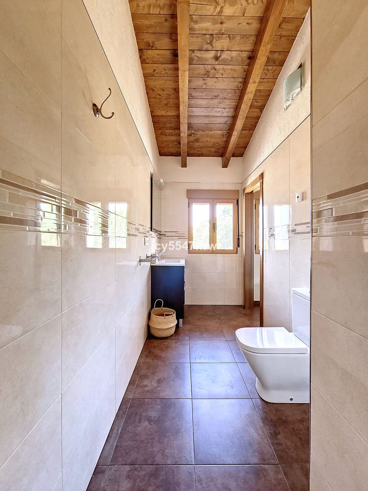 It was once an old bodega (winery) and has been fully renovated to an exceptionally high standard. On the ground floor, the property features a spacious entrance hall and a stunning large open-plan living/dining room with vaulted beam ceilings. The high-quality kitchen/breakfast room is fully equipped with granite worktops, a freestanding wood-fired Aga, and a separate utility room with wine storage. The heating and hot water system are located in the boiler room. Also on the ground floor is a large double bedroom with an en-suite bathroom and built-in wardrobes, French doors leading to the garden, and a large wardrobe closet.