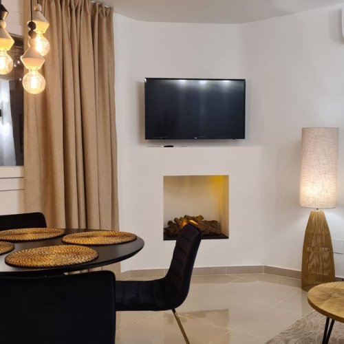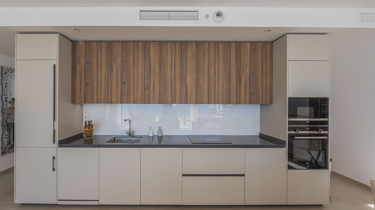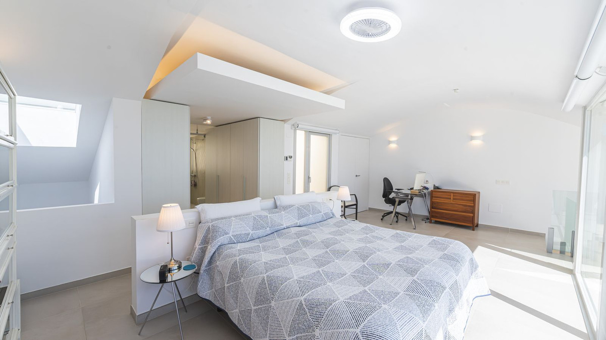 Built on 2 levels: on the entrance floor there are 2 cosy bedrooms, a complete bathroom, modern kitchen with SIEMENS appliances integrated in the living room and a magnificent terrace with barbecue area; and on the upper floor, to enjoy privacy and views we have the master bedroom, with dressing room and bathroom en suite, there is also the laundry room and a terrace-solarium with spectacular views.