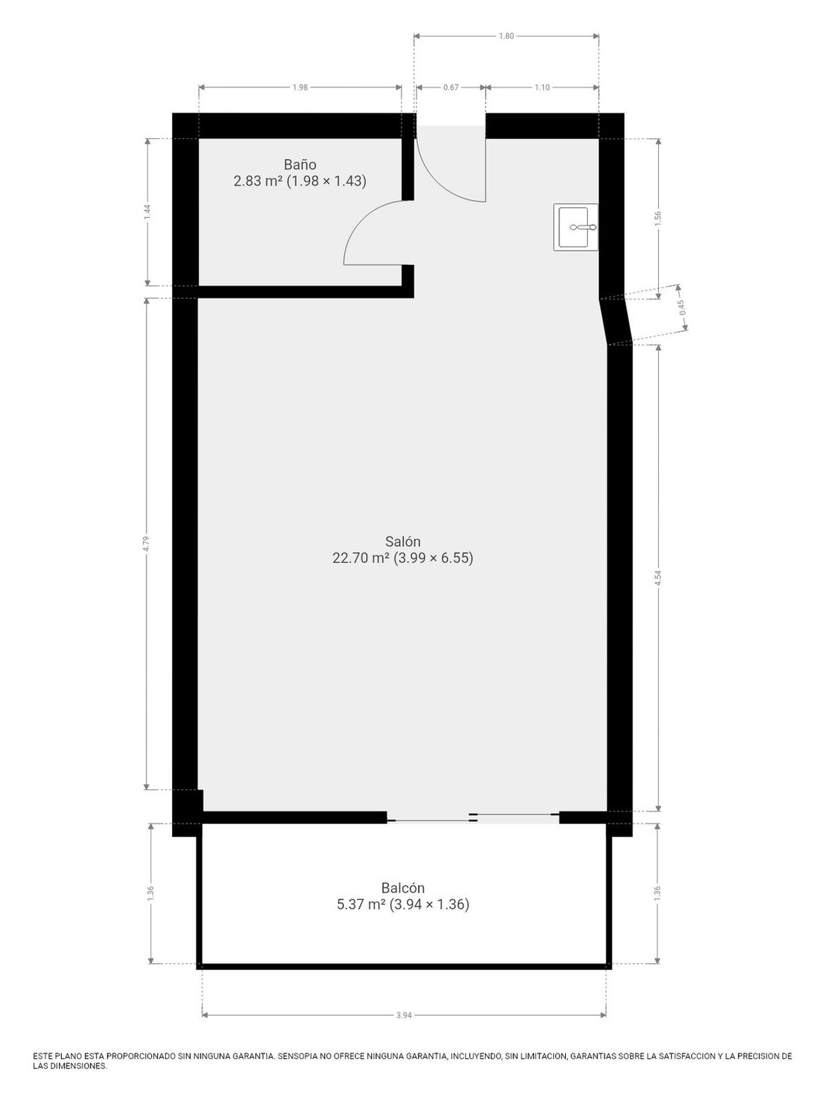 It features a 23 m² living room, an integrated kitchen that makes the most of the space, and a 3 m² bathroom. Its smart layout ensures that every corner is practical and comfortable, perfect for those looking for a cozy home or a profitable investment.