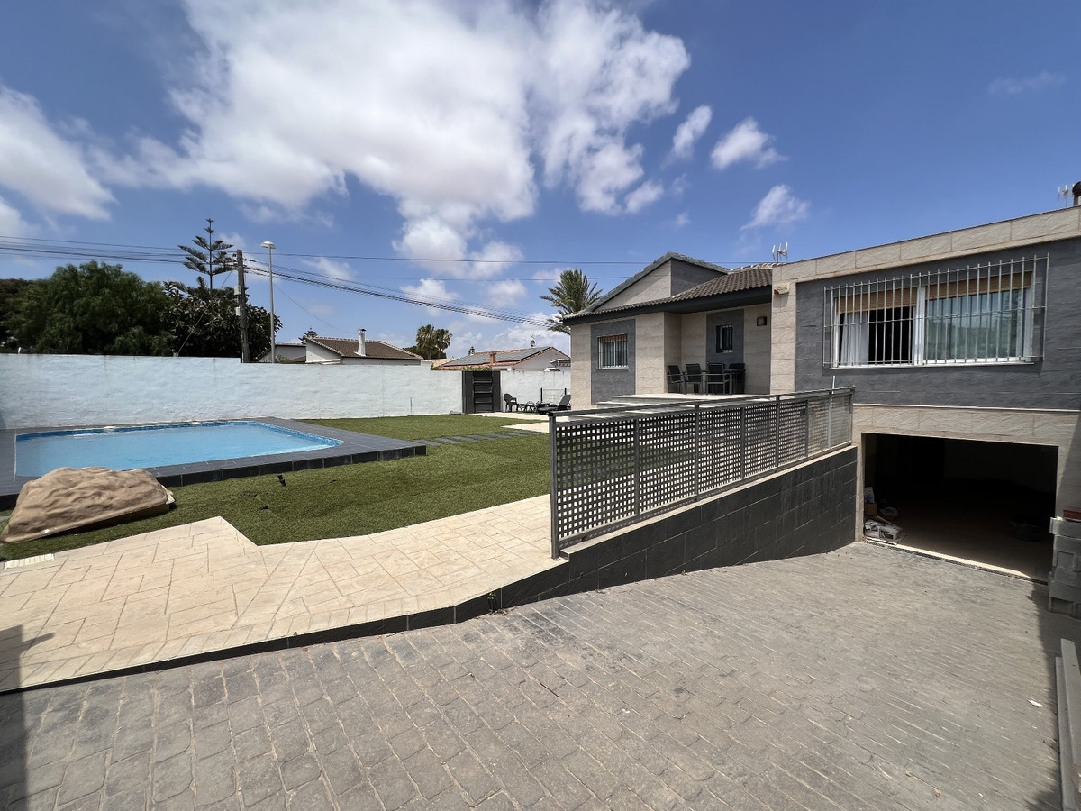 Welcome to this generous 3-bedroom, 2-bathroom semi-detached villa, perfectly situated on a private plot with high privacy walls. This delightful home features a refreshing pool and a south-facing garden, ideal for enjoying the sun throughout the day. The property also includes driveway, underground parking area and an expansive underbuild, offering ample space and storage. The front terrace, perfect for evening dinners, invites you into this warm and welcoming home. Upon entering, you are greeted by a cozy entryway leading into a spacious open-plan living room and dining area. With views of the garden and a cozy fireplace, this space is perfect for relaxing and entertaining. The well-appointed family kitchen offers direct access to the rear garden and laundry facility. Moving into the living quarters, you will find a large family bathroom, two generous double bedrooms, and a luxurious master suite. The master suite boasts a walk-in wardrobe and an en-suite bathroom, providing a private retreat within the home. This villa is designed for comfort and convenience, with thoughtful details and ample space for family living. Don't miss the chance to make this beautiful property your new home. Schedule a viewing today and experience the best of relaxed, private living.