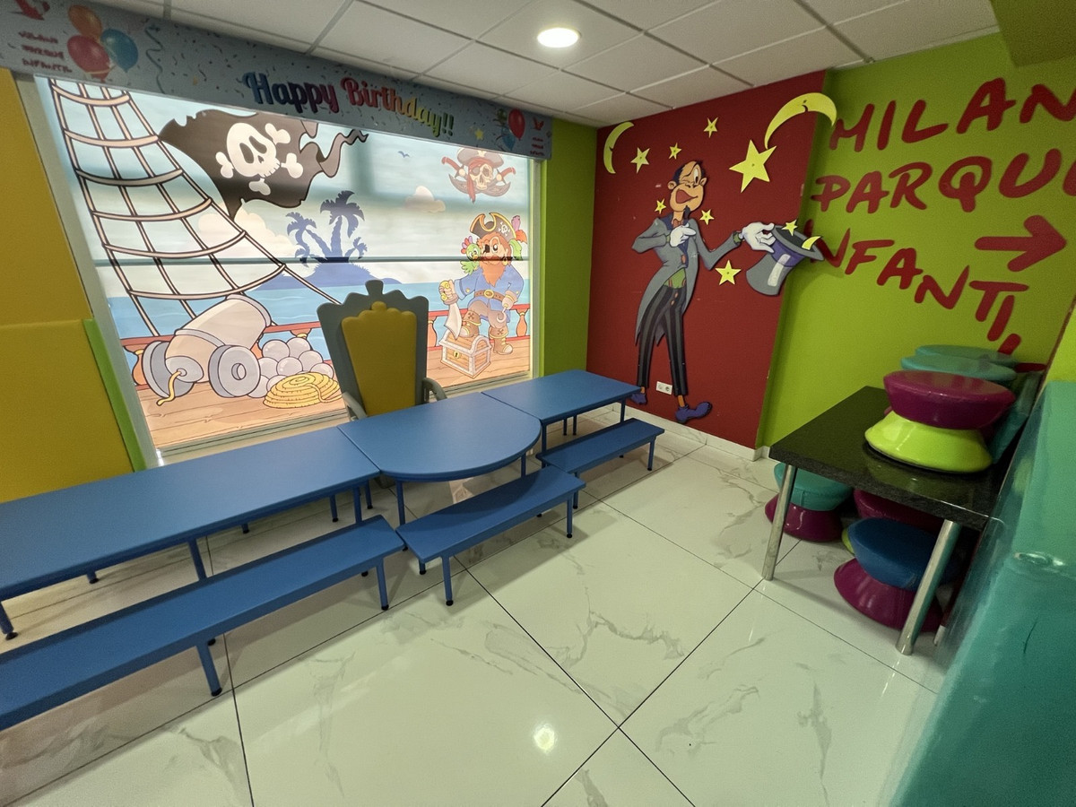 The premises houses various business: on the first floor a superhero themed children's activity center - great for kids parties, down on the ground floor you will find a family restaurant with a great sunny terrace space, head to the roof top you will find a chill out lounge/bar currently under construction, with stunning views of the salt lake and surrounding area - as well as a studio live in accommodation.